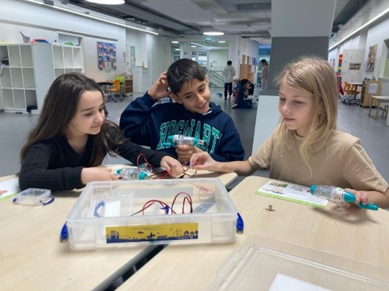 Während der Projektzeit widmeten sich die Kinder jeder Box mit großer Aufmerksamkeit und Hingabe. Dank präziser Anleitungen tauchten sie tief in die Materie ein, erforschten eigenständig verschiedene Aspekte und erarbeiteten sich so ein fundiertes Verständnis für elektrische Phänomene. Die Projektarbeit erfolgte in kleinen Gruppen, um sicherzustellen, dass jedes Kind aktiv am Lernprozess teilnehmen kann.