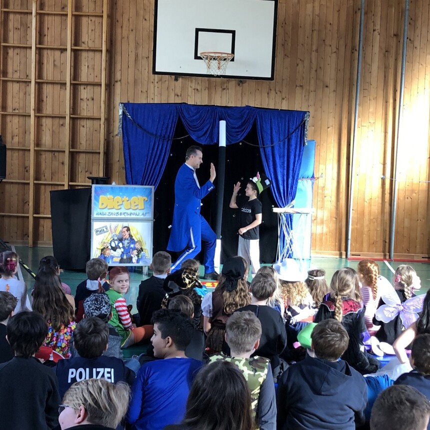 Am 1. März feierte unsere Schule das Faschingsfest. Zauberer Dieter besuchte uns im Turnsaal und sorgte für die ein oder andere Verblüffung und lautes Gelächter!
