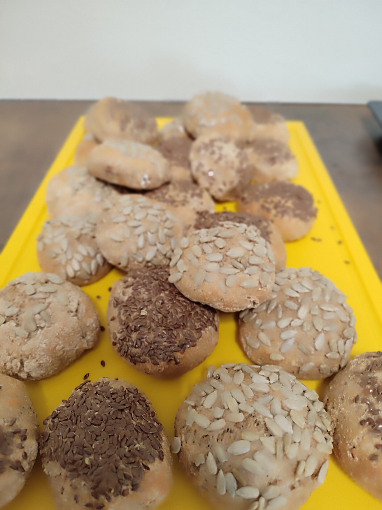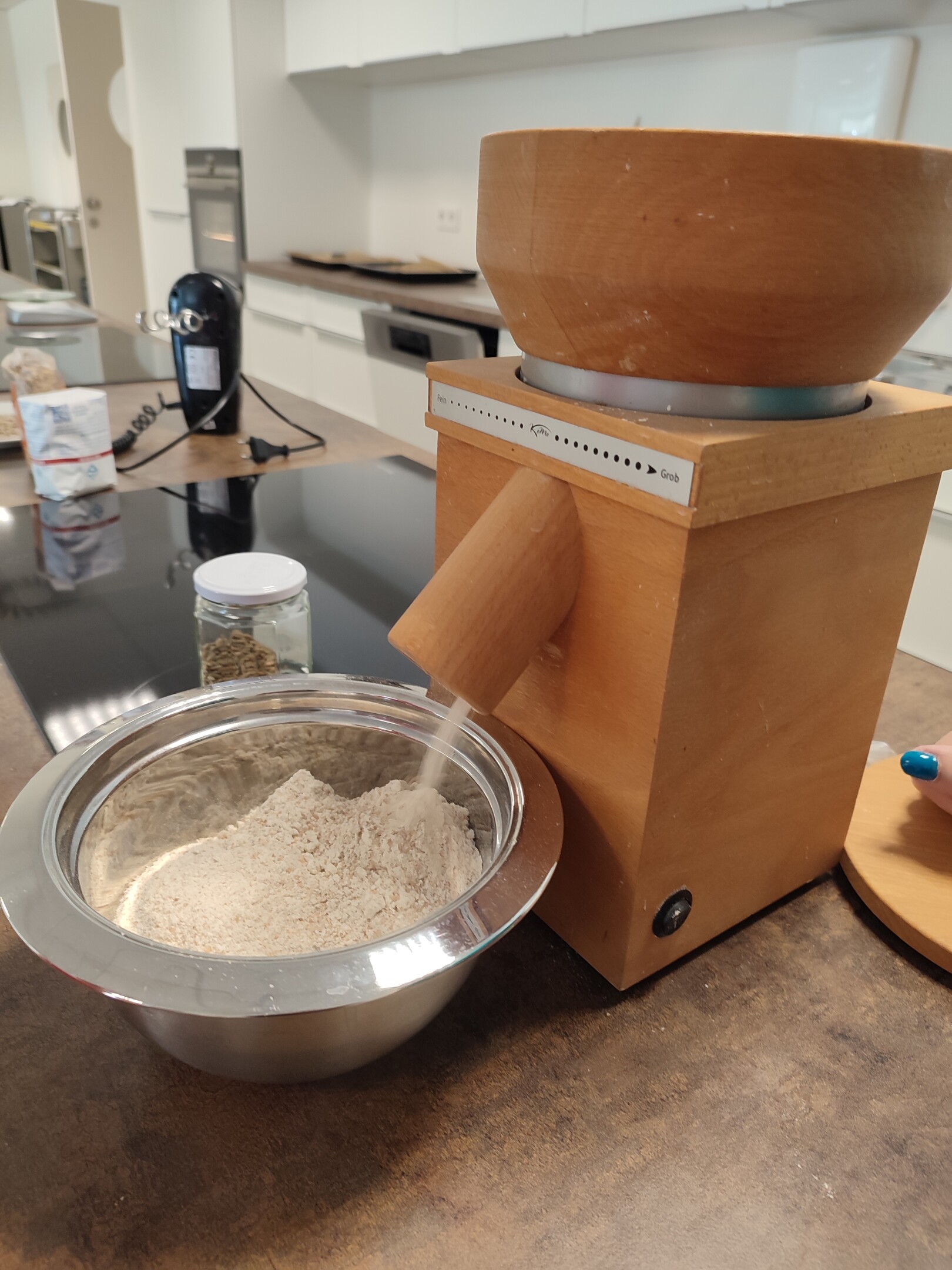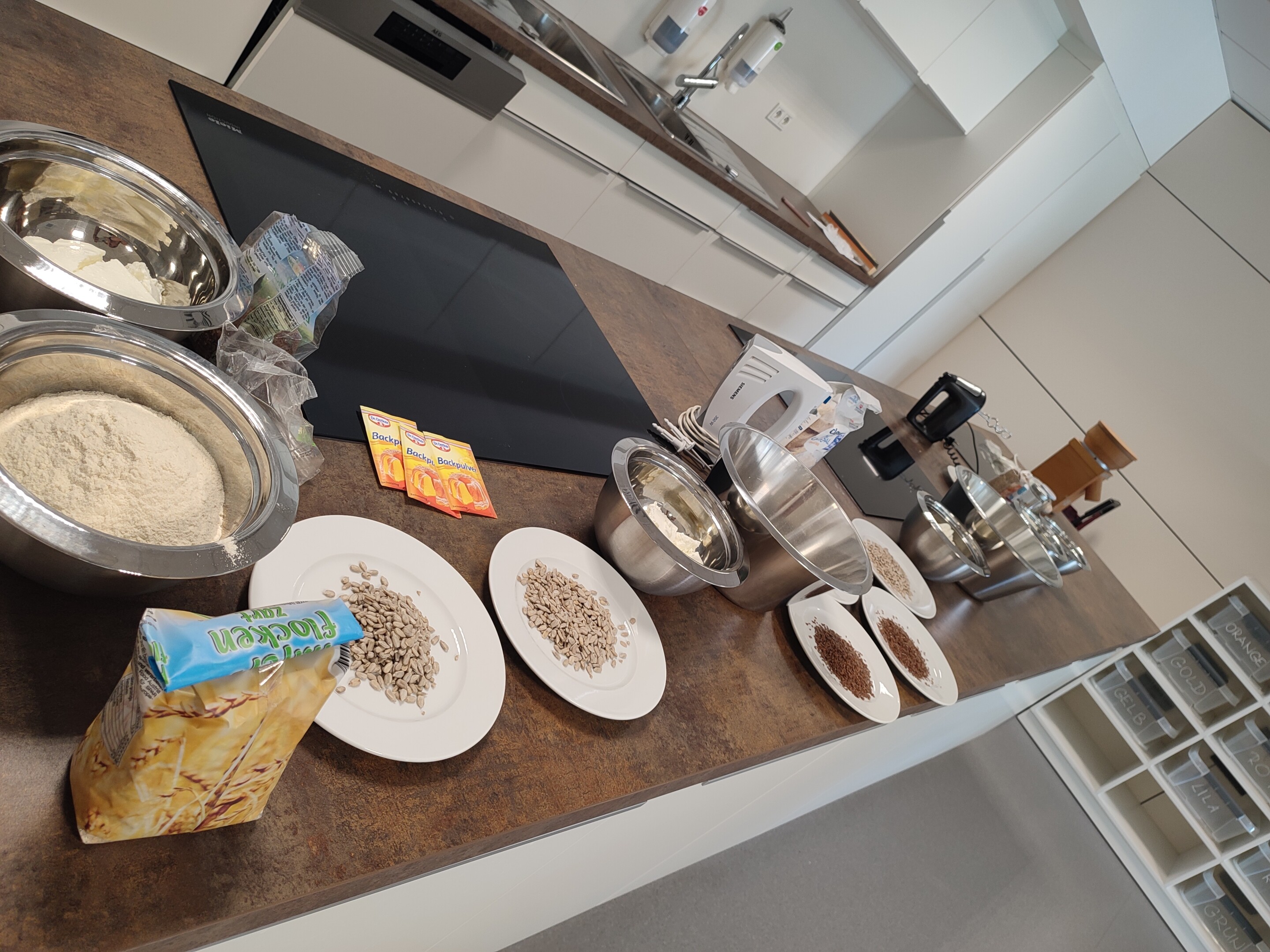 Bereits am Montag, den 19.6., starteten wir in den ersten Stunden im Speisesaal mit dem Thema Getreide. Wir versuchten, Getreidearten von einander zu unterscheiden und den Weg von der Pflanze zum Mehl zu verstehen. Die selbstgemachten Topfenweckerl wurden in 2 Varianten gemacht, gekauftes Weizenmehl und selbst gemahlenes Mehl aus Weizenkörnern, um den Geschmack vergleichen zu können. Vollkornmehl ist im Bezug auf gesunde Ernährung sehr wichtig, dies sollte den Kindern so vermittelt werden.