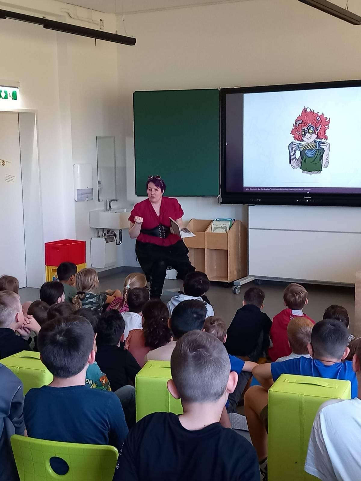 Die Kinderbuchautorin und ehemalige Lehrerin Claudia Aichholzer besuchte unsere Schule Anfang Mai. Dabei erzählte sie den Kindern der zweiten, dritten und vierten Schulstufe alles über ihren Beruf als Fantasy- Autorin und ihre Liebe zum Schreiben. Ihre Begeisterung eigene Welten, Ideen und Figuren zu erfinden und schriftlich Umzusetzen, faszinierte viele unserer SchülerInnen und sie stellten viele Fragen über das Leben als Autorin.