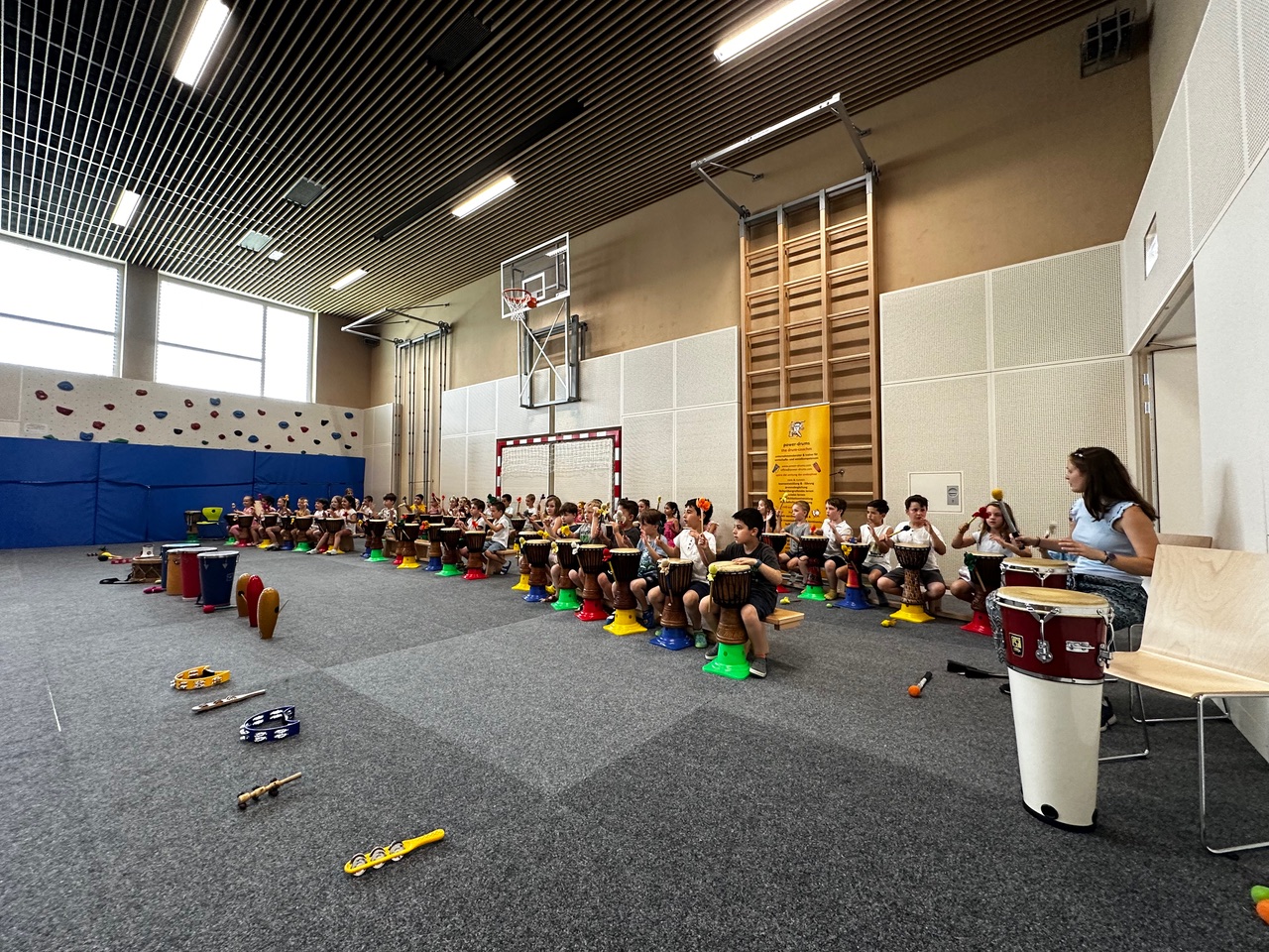 Am Freitag, den 21. Juni, fand in der Volksschule am Frauenfeld das alljährliche Abschlussfest statt. Dieses Jahr gaben alle Kinder nach einem vierstündigen Trommelworkshop mit Trommelcoach Hermann Hombauer von Powerdrums zwei fulminante und großartige Konzerte.