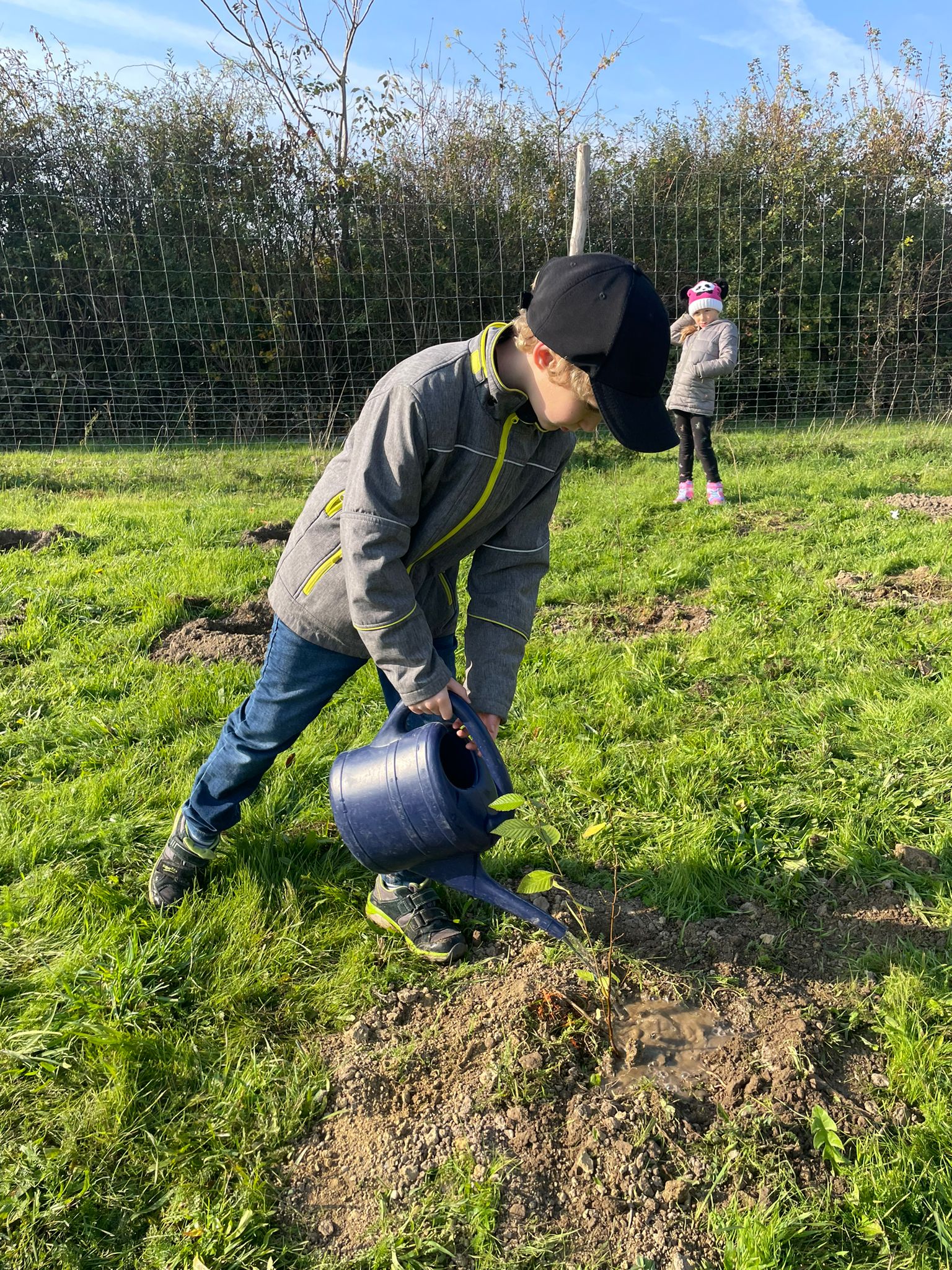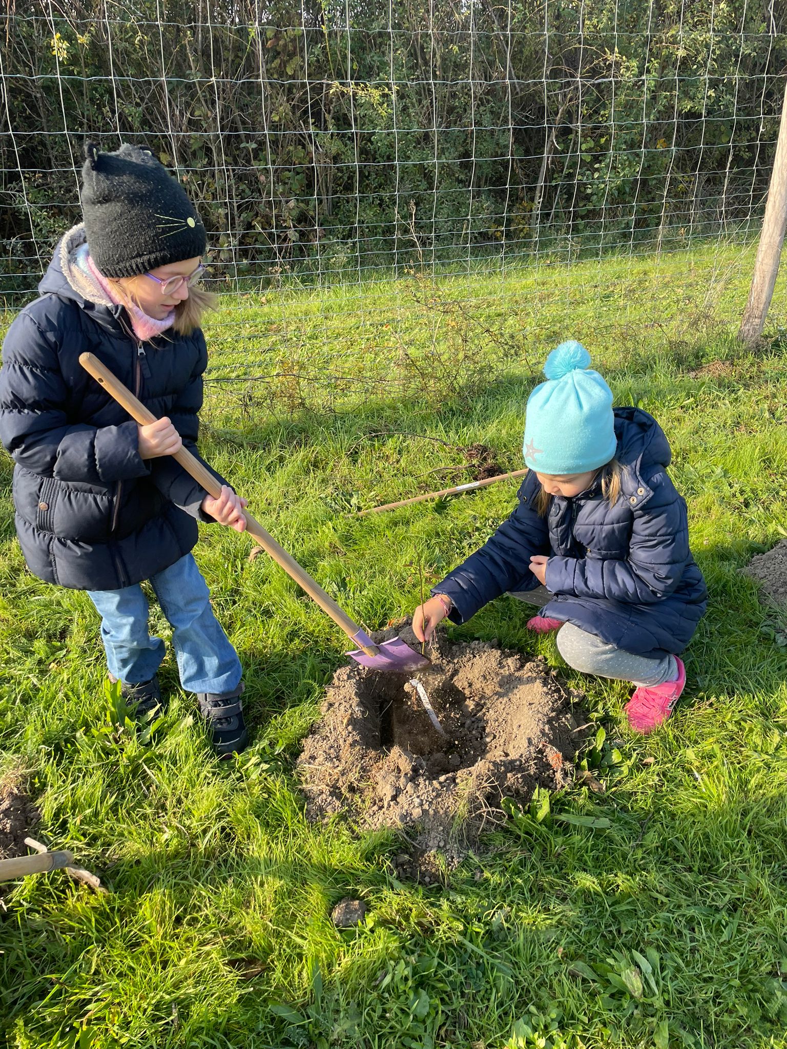 Unsere Erstklässlerinnen und Erstklässler haben sich an einem spannenden Tag in der Natur beteiligt und ihren Beitrag zur Umwelt geleistet. Gemeinsam lernten die Kinder, warum das Pflanzen von Bäumen so wichtig ist – nicht nur für den Klimaschutz, sondern auch für das Wohl unserer Gemeinschaft und zukünftiger Generationen.