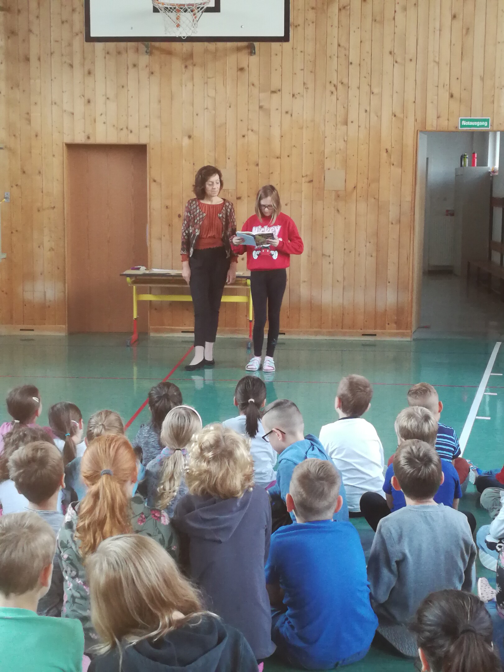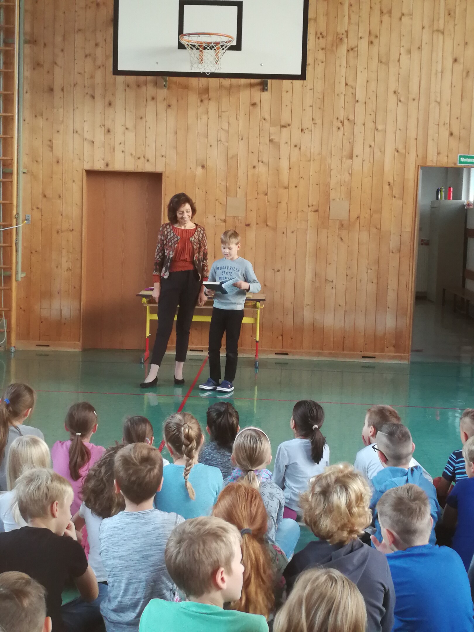 Wie gewohnt fand über die Sommerferien ein Lesewettbewerb statt. Die Kinder durften sich dazu ein spannendes Buch aussuchen, dass sie in Form eines Gucklochbuches zu Schulbeginn der Klasse präsentieren durften. Weiters durften die eifrigen Leser/innen eine Lieblingsseite vorlesen. In jeder Klasse wurde ein Lesekönig/eine Lesekönigin gekührt. Die Gewinner durften im Turnsaal ihr Buch den anderen Klassen präsentieren. Wir freuen uns, dass viele Kinder so motiviert mitgemacht haben und weiterhin eifrig Bücher verschlingen werden!