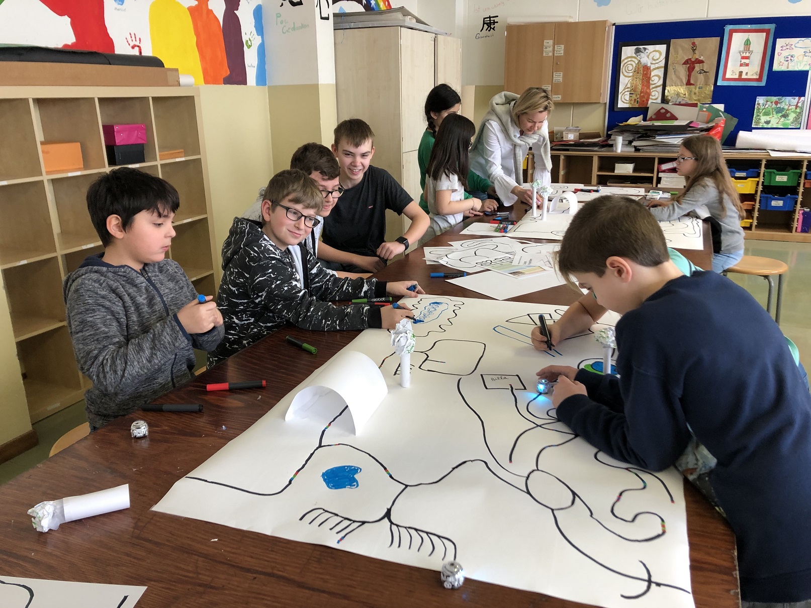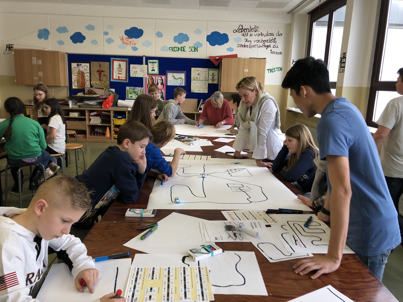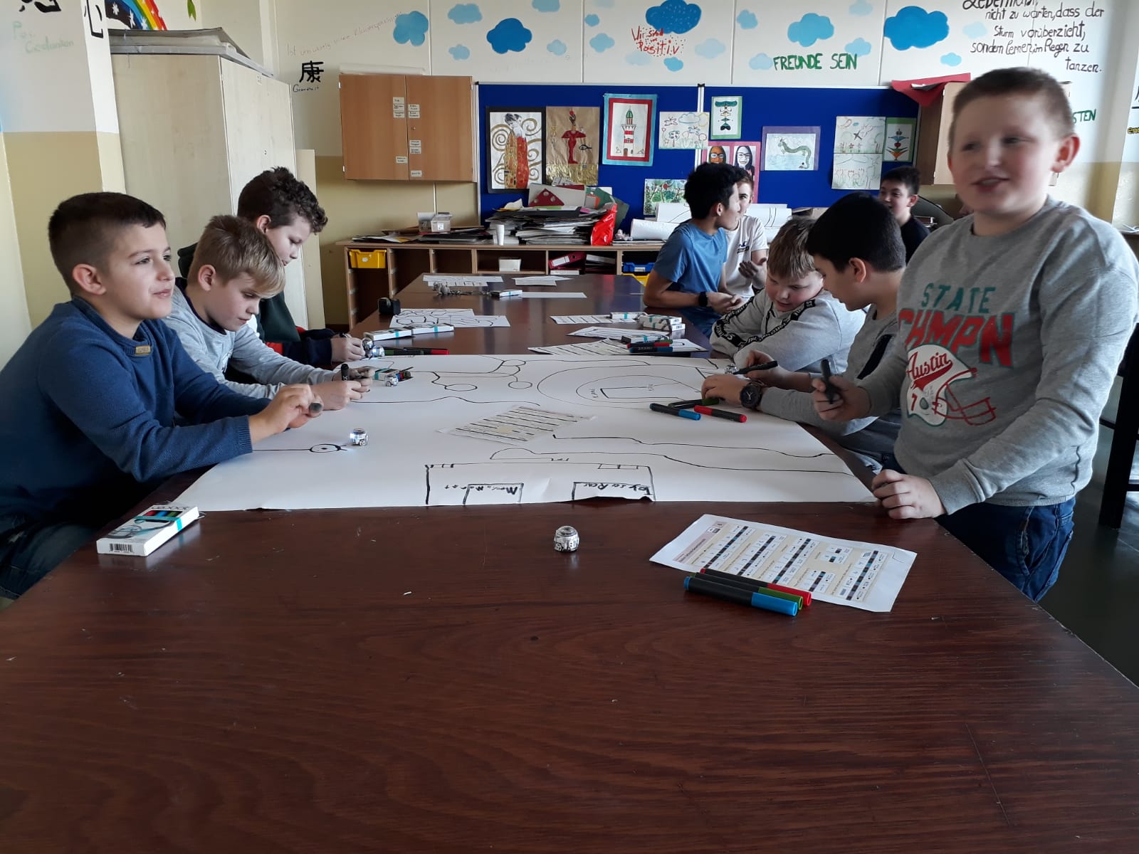 Im Februar 2019 besuchten die 4.Klassen die NMS Frauenfeld um Ozobots (kleine, fahrende Roboter) zu programmieren. Sie wurden dabei von Schülern und Lehrern der NMS unterstützt. Es entstanden ganze Ozobot - Städte, der Kreativität waren dabei keine Grenzen gesetzt. Die Begeisterung war bei allen riesengroß.