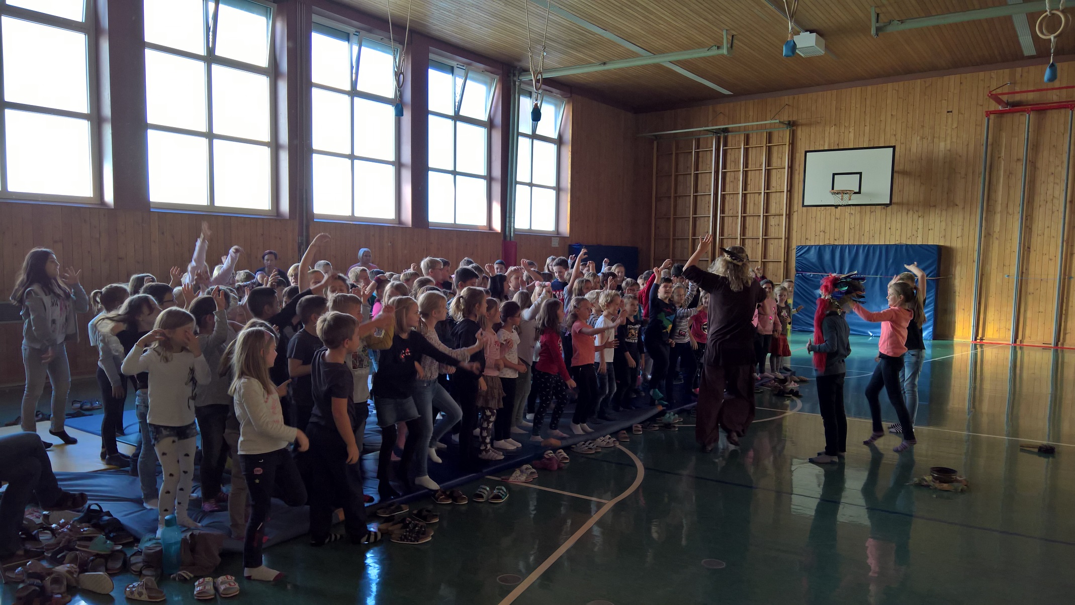 Am 05.10.2018 sahen wir den ersten Teil des Musicals "Kleine Feder auf großer Mission" von Lisa Valentin. Die Kinder wurden mit Spaß und Musik auf den Umgang mit "Mutter Erde" sensibilisiert. Mülltrennung und Umweltschutz waren anschaulich verpackt in musikalische Unterhaltung und Bewegung. Die Kinder hatten großen Spaß!