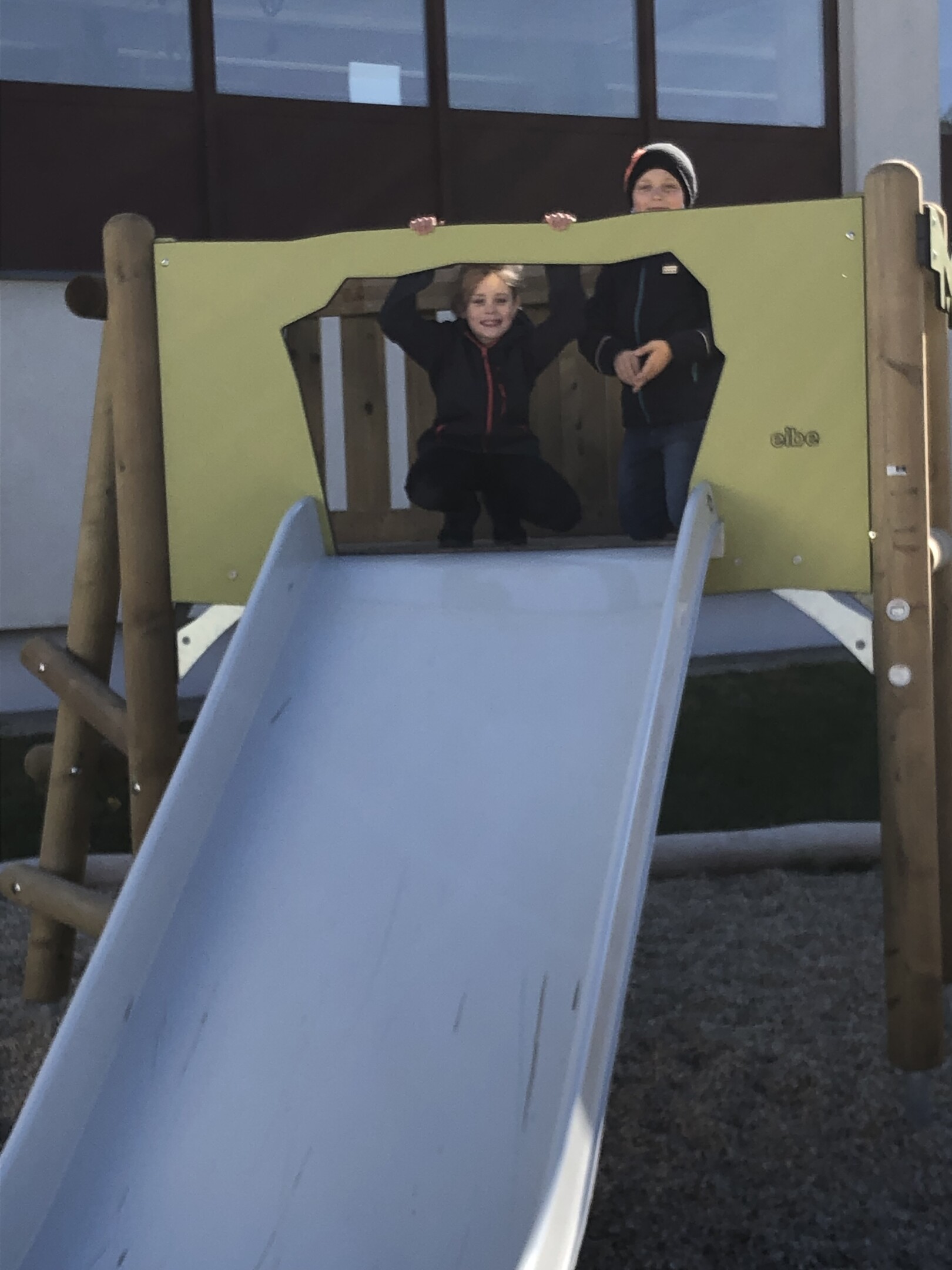 Wir haben viel Freude nun endlich unseren Spielplatz nutzen zu dürfen.
