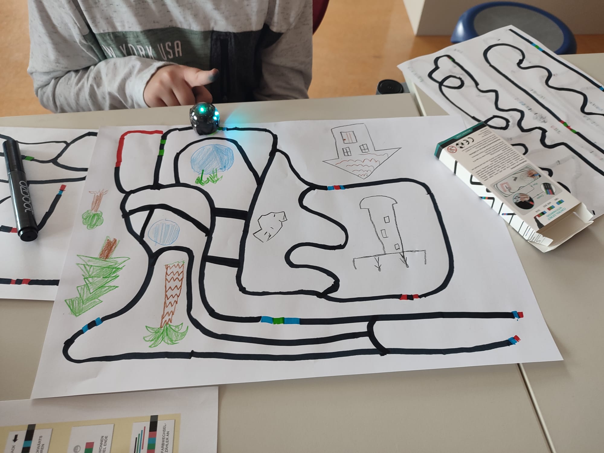 Die ersten Besuch in der Mittelschule Frauenfeld hatten den Schwerpunkt "Robotik". Wir durften mit den kleinen Robotern "Ozobot" kleine Städte durchlaufen und die verschiedenen Programmierungen ausprobieren. Hierbei entstanden sehr unterschiedliche Endergebnisse.