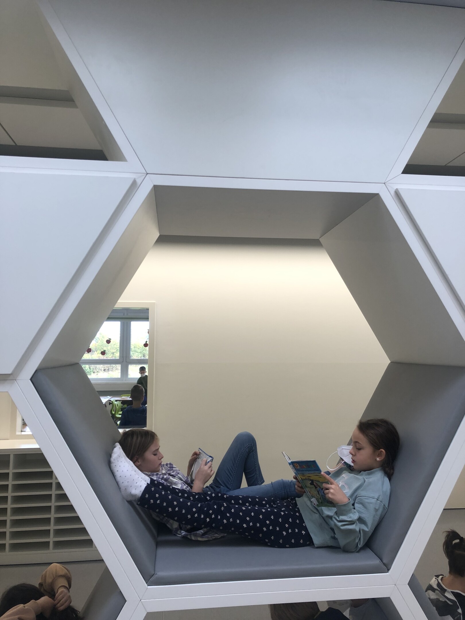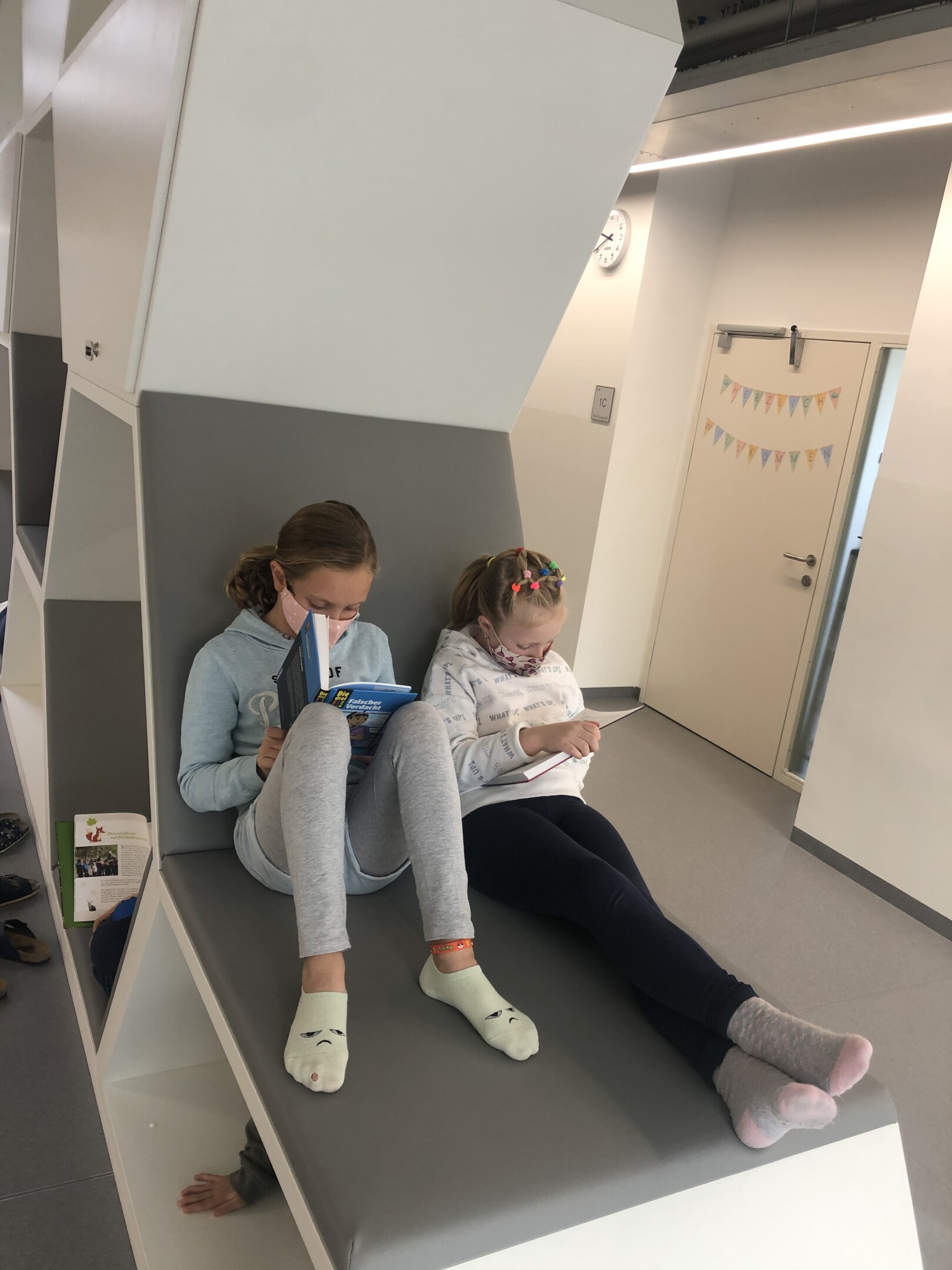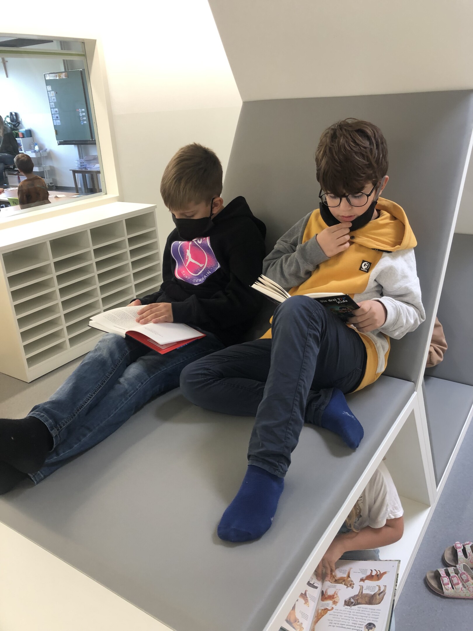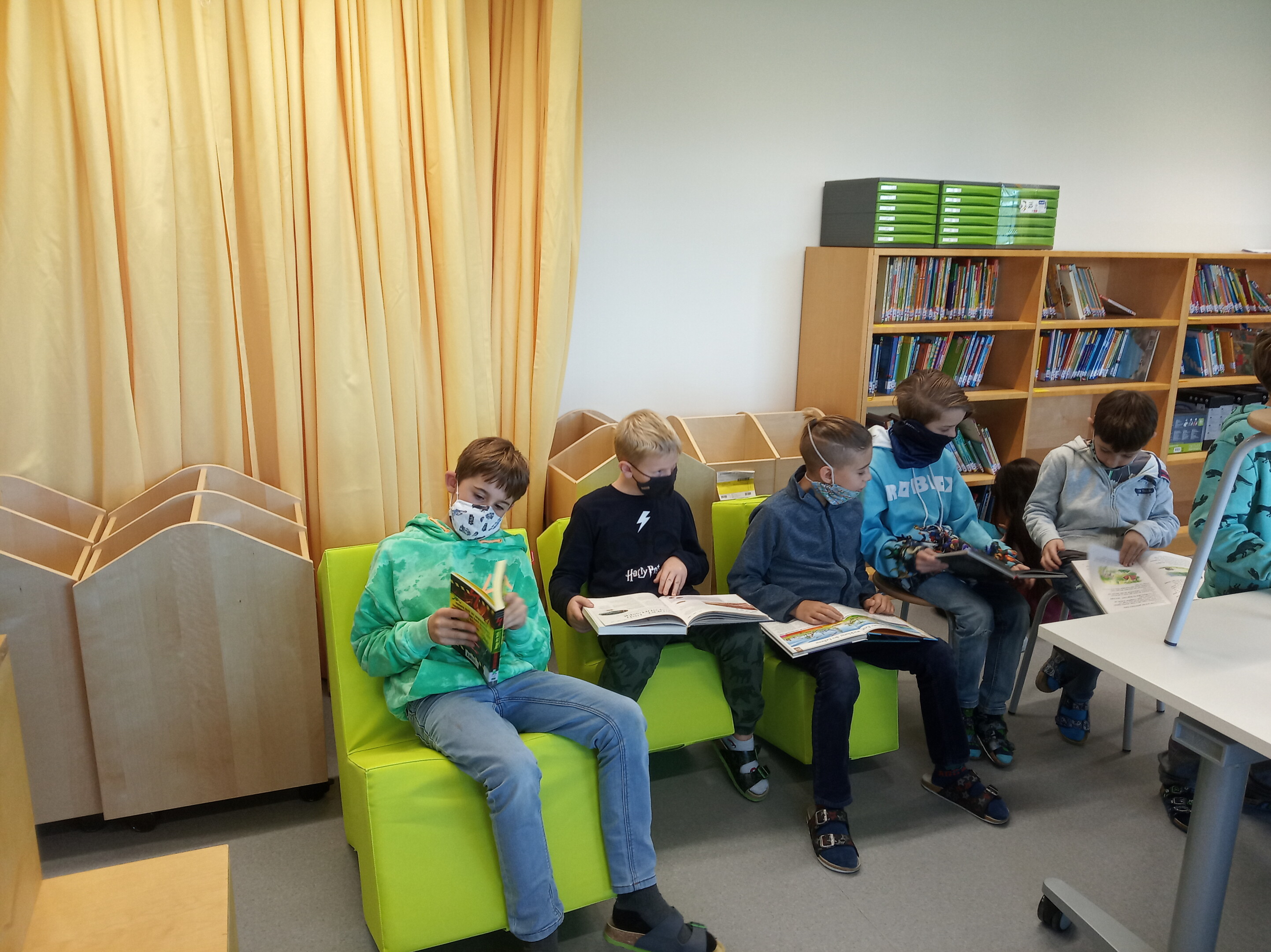 Wir waren schon in der Bibliothek und haben darin gestöbert. Viele Kinder haben auch ein Buch gefunden, das für sie ansprechend war und haben es ausgeborgt.