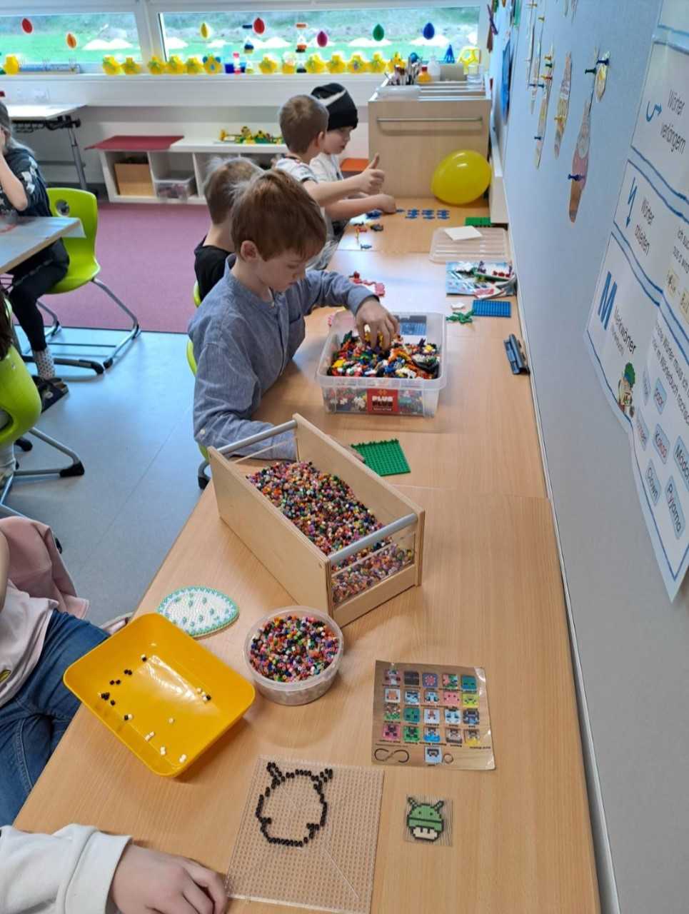 Die Kinder haben die Möglichkeit sich mit verschiedenen Materialien und Techniken vertraut zu machen und sich darin auszuprobieren. So kann sich jedes Kind seinen individuellen Bedürfnissen widmen und das eigene Potenzial entwickeln. Natürlich gibt es auch die Möglichkeit Brett-, Konstruktions- oder Rollenspiele zu spielen. Weiters gibt es einen großen Garten der gerne von den Gruppen genutzt wird.