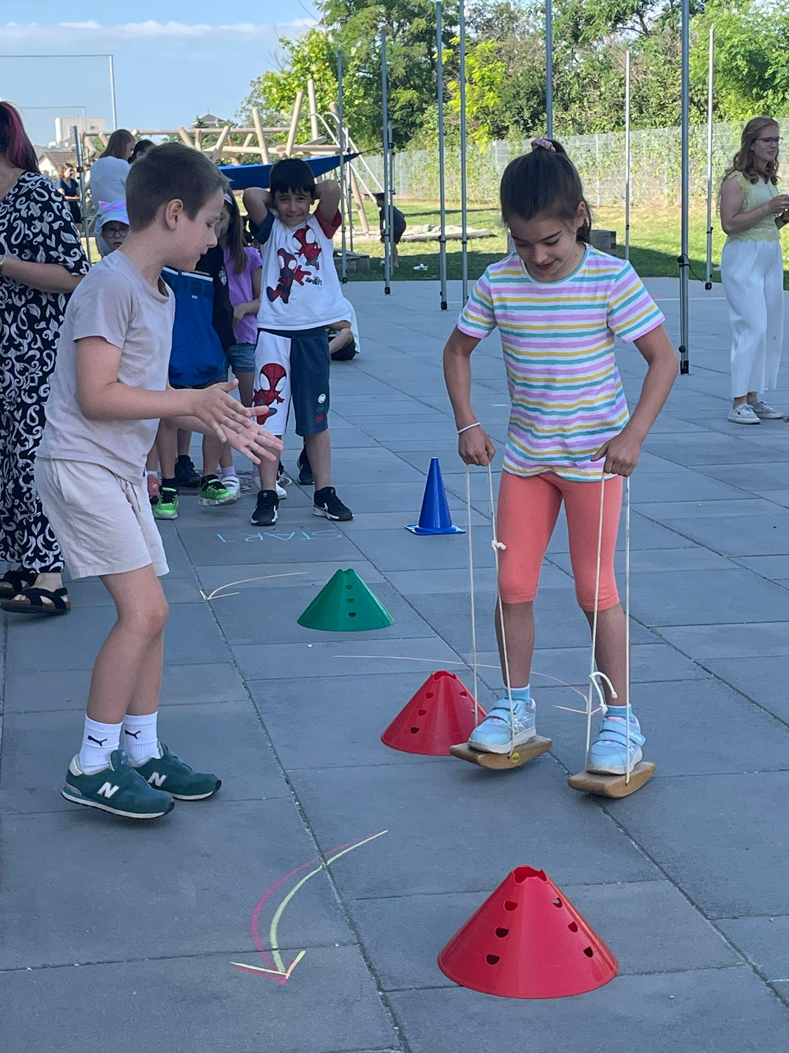 Auf sie warteten zahlreiche abwechslungsreiche Stationen, bei denen Geschicklichkeit, Ausdauer, Kreativität und Teamgeist gefragt waren. Jede Klasse durfte alle Stationen besuchen und vom Balancieren über Spring- und Laufspiele bis hin zu actionreichen Wasserstationen und kreativen Bastelstationen ihre Fähigkeiten zeigen.