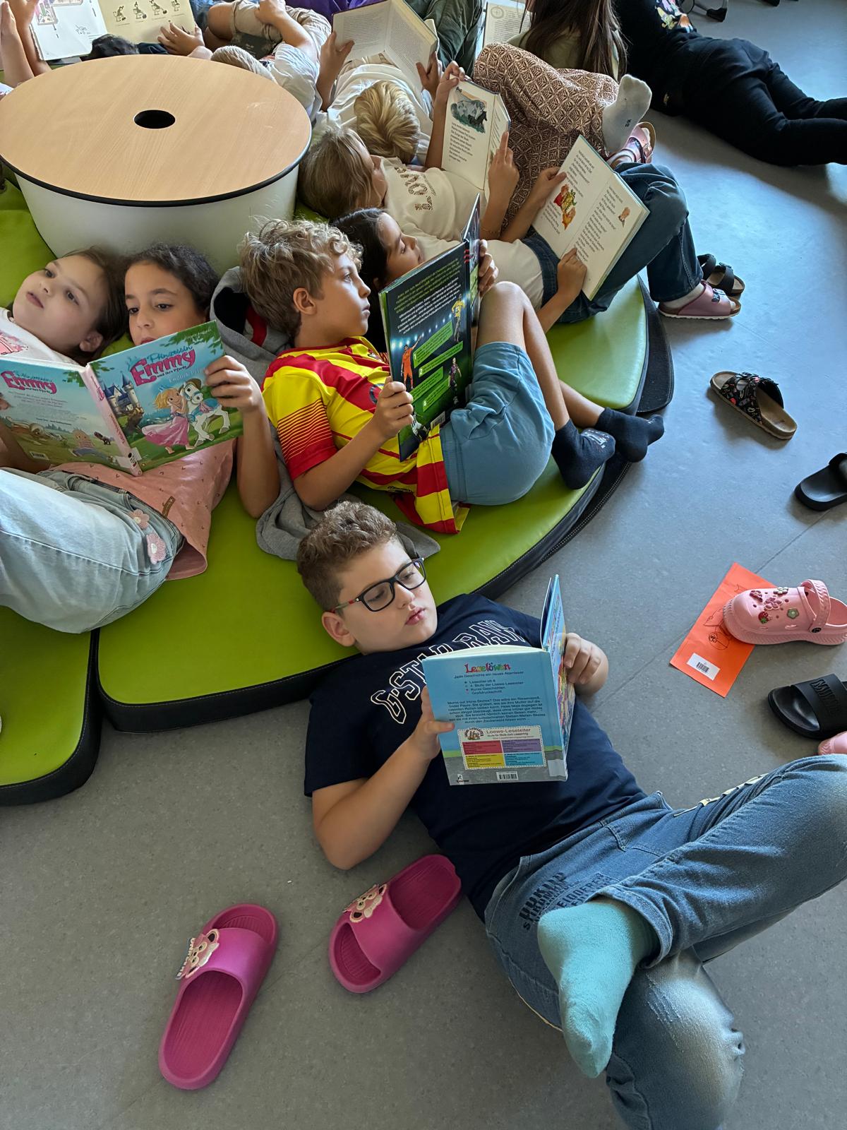 Die Schülerinnen und Schüler der 3D zeigen große Begeisterung für das Lesen. Mit viel Freude besuchen sie jede Woche die Schulbibliothek, stöbern in neuen Büchern und erweitern so ihren Leseschatz. Der regelmäßige Besuch ist für die Klasse ein fester Höhepunkt, der ihre Lesemotivation nachhaltig stärkt