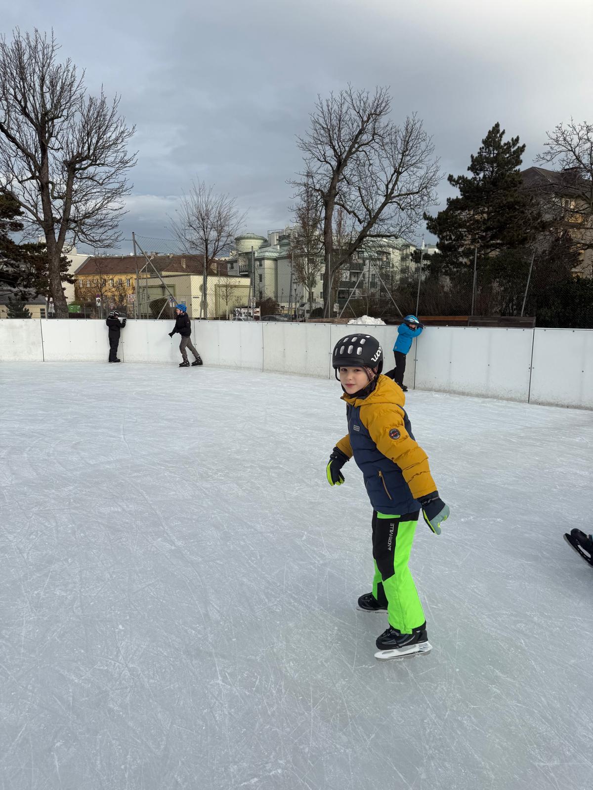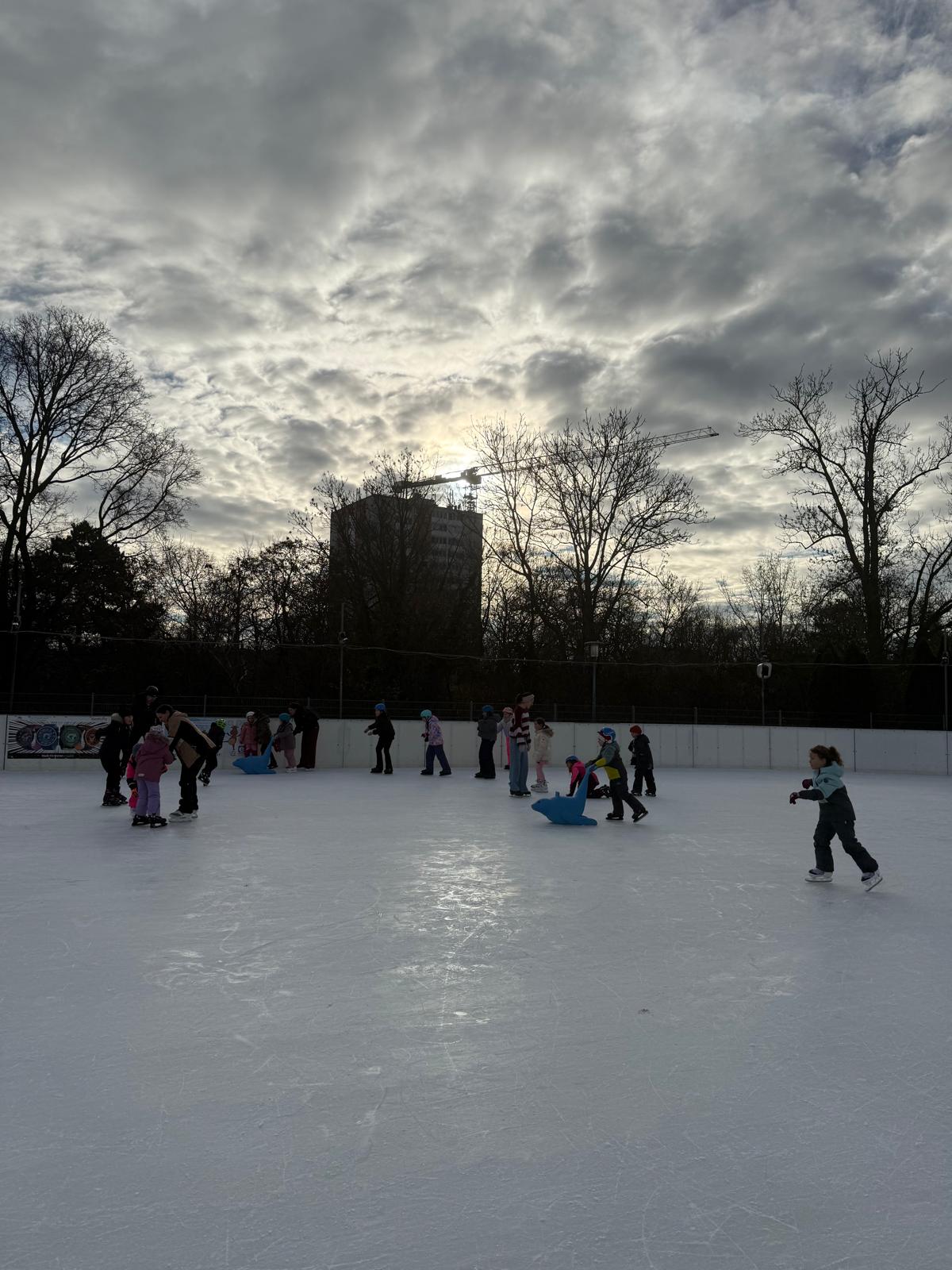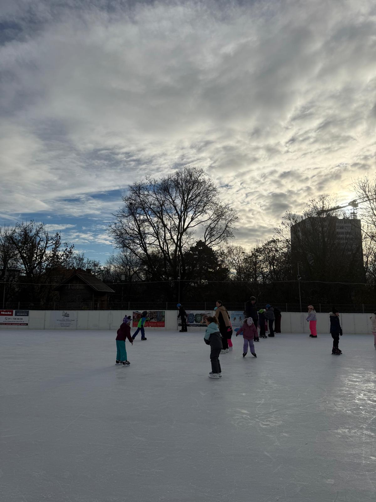Die Klassen 1B und 4A verbrachten gemeinsam einen wunderbaren Vormittag am Eislaufplatz in Schwechat. Bei perfektem Wetter genossen die Kinder das Eislaufen in vollen Zügen – mit viel Freude, Bewegung und gegenseitiger Unterstützung auf dem Eis.