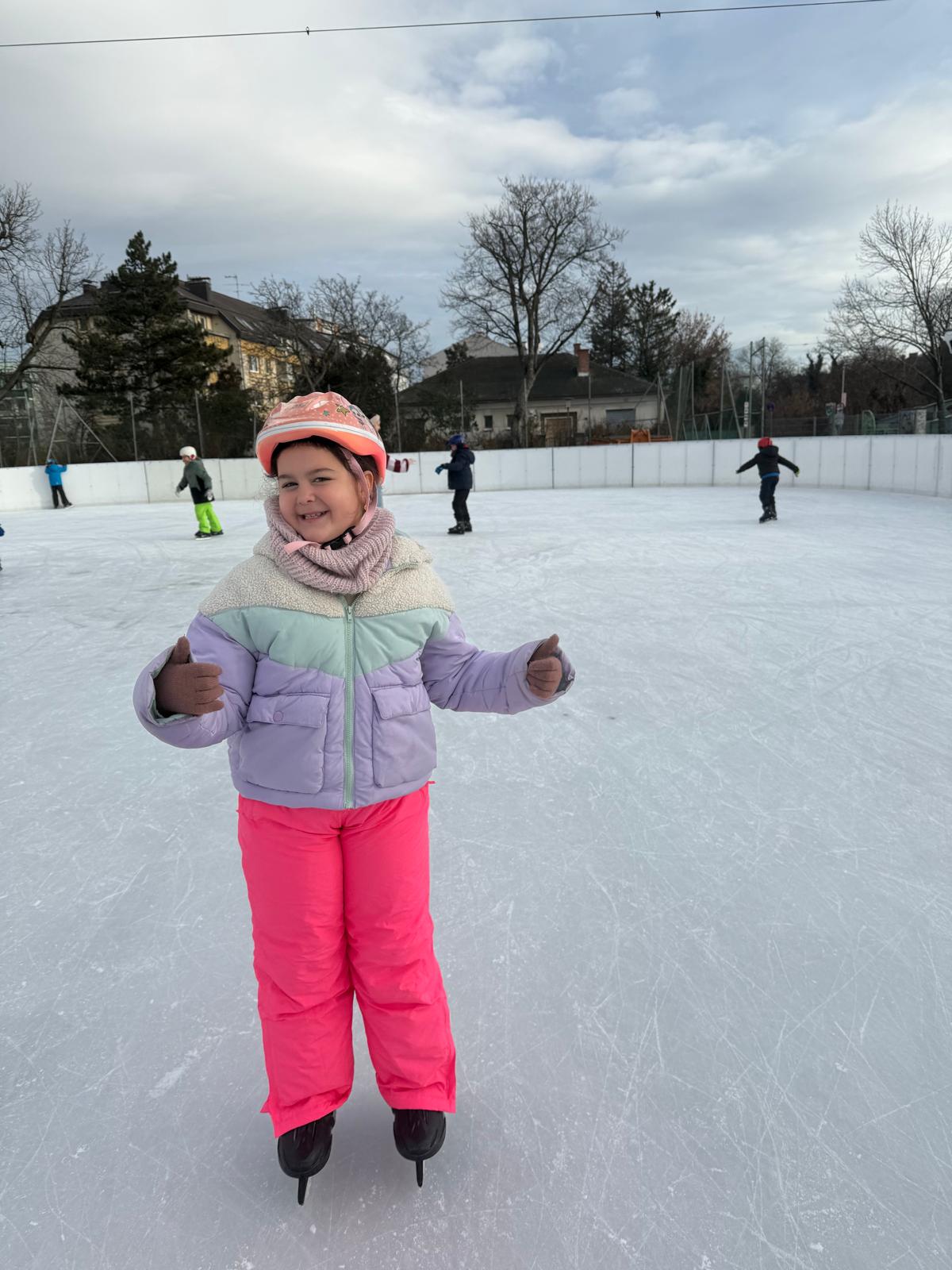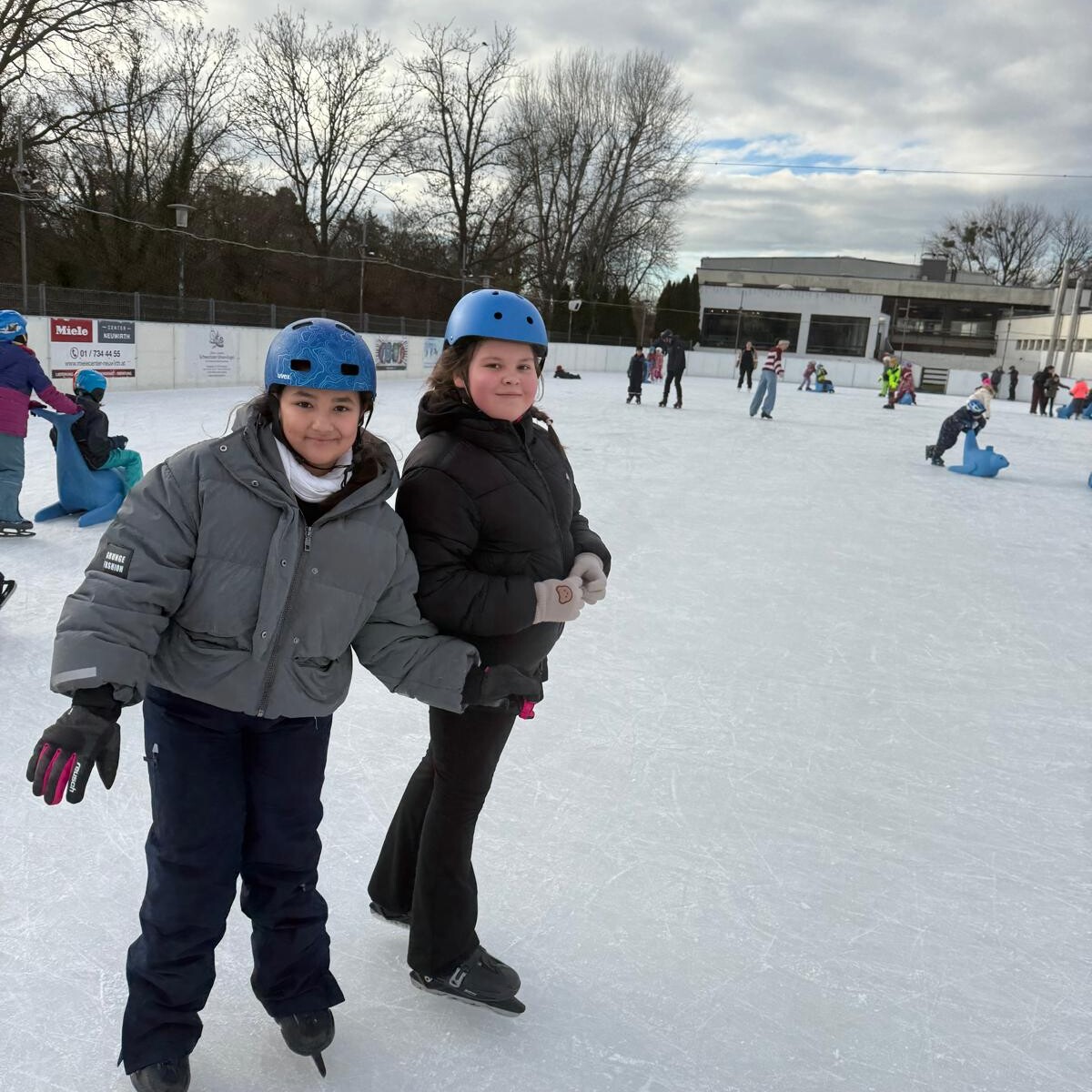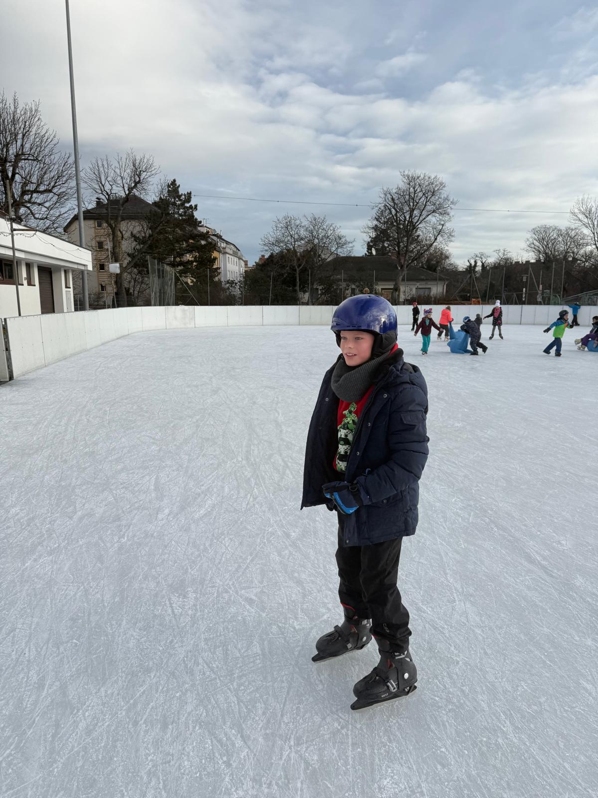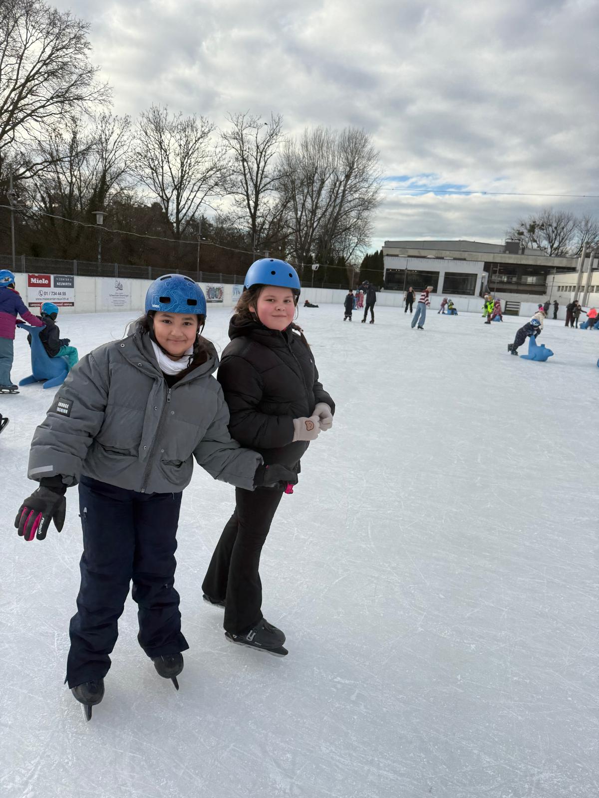 Die Klassen 1B und 4A verbrachten gemeinsam einen wunderbaren Vormittag am Eislaufplatz in Schwechat. Bei perfektem Wetter genossen die Kinder das Eislaufen in vollen Zügen – mit viel Freude, Bewegung und gegenseitiger Unterstützung auf dem Eis.