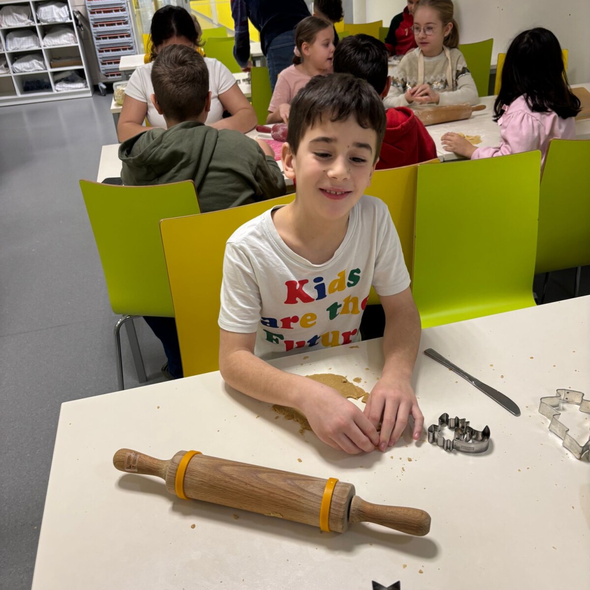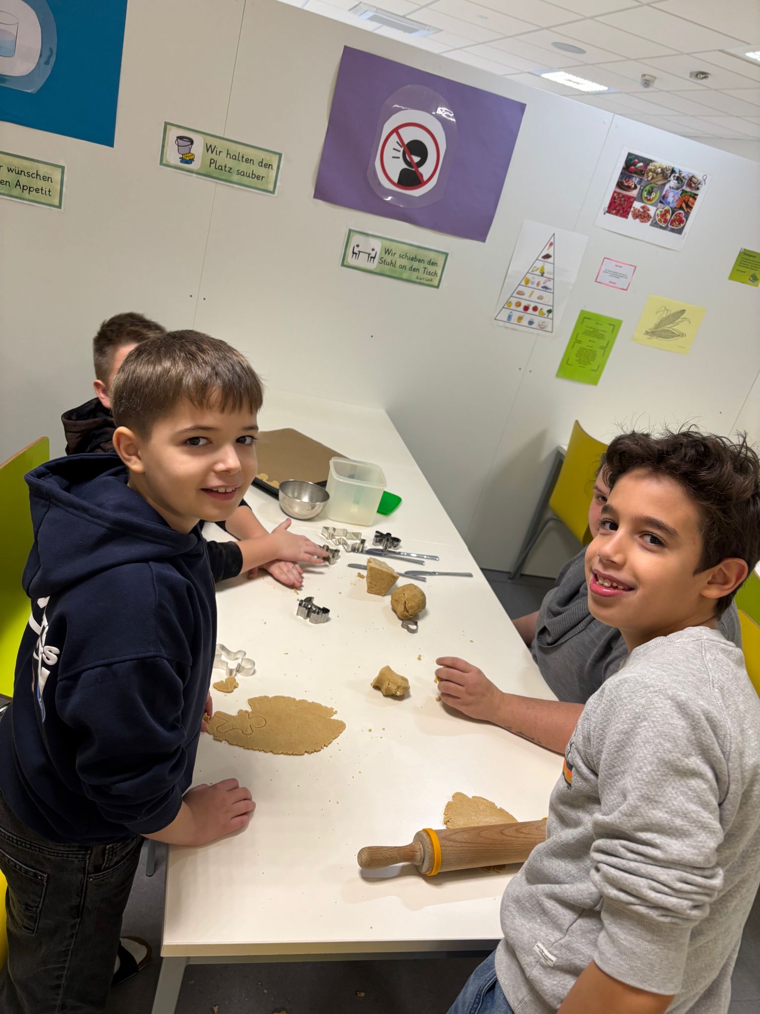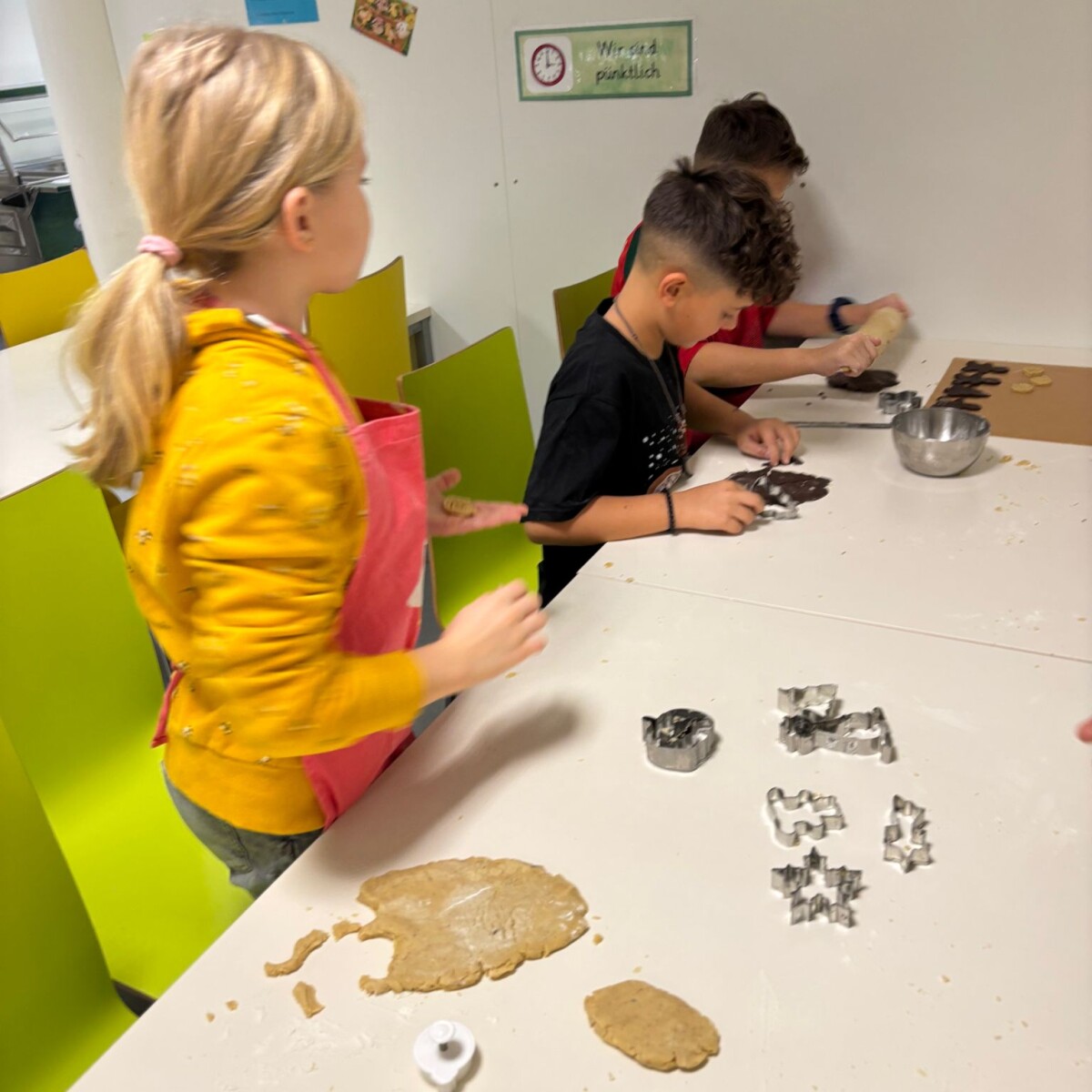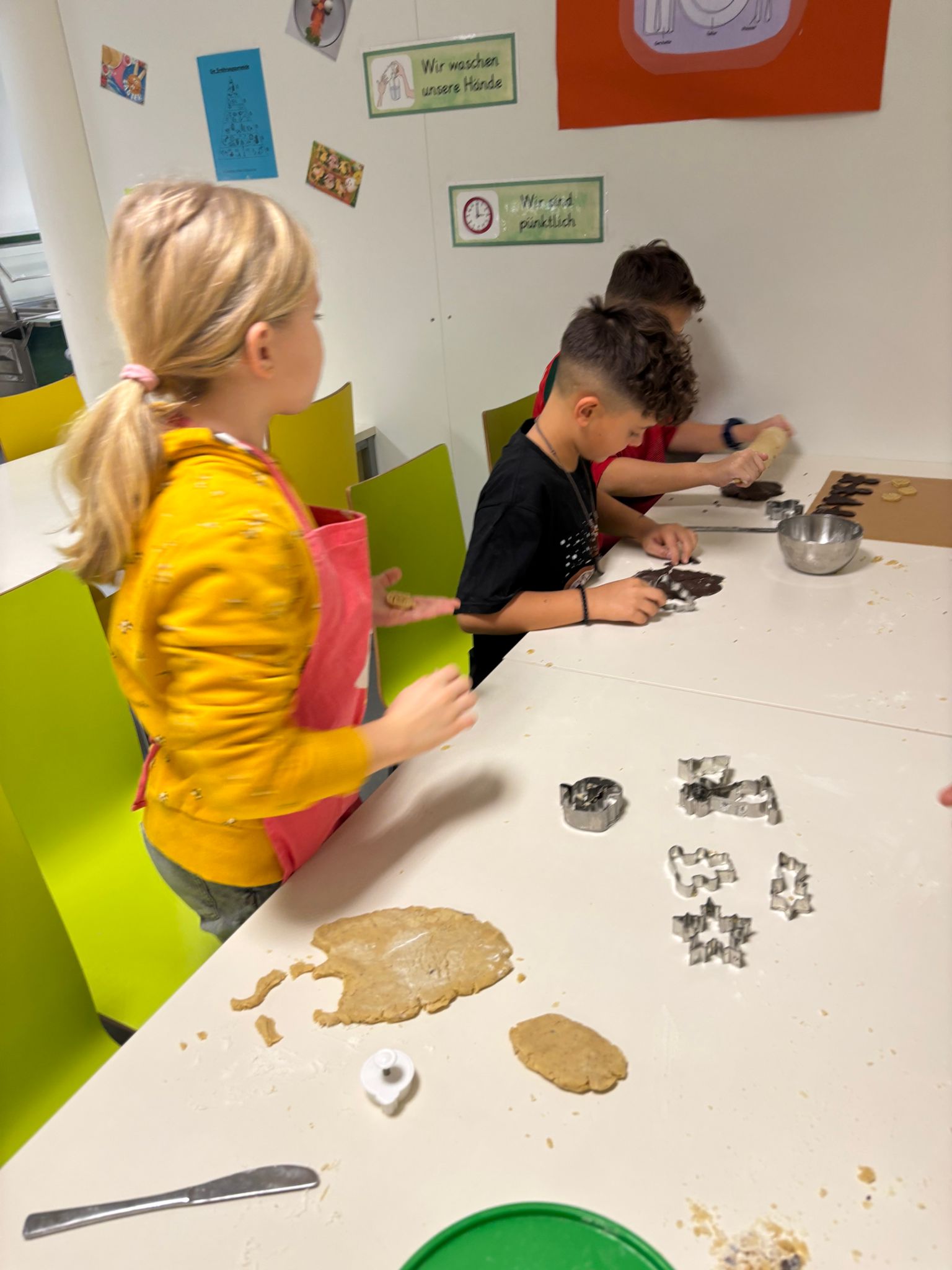 Mit viel Freude und Kreativität rollten die Kinder den Teig aus, formten verschiedene Keksvarianten und lernten dabei auch den verantwortungsvollen Umgang mit Lebensmitteln.