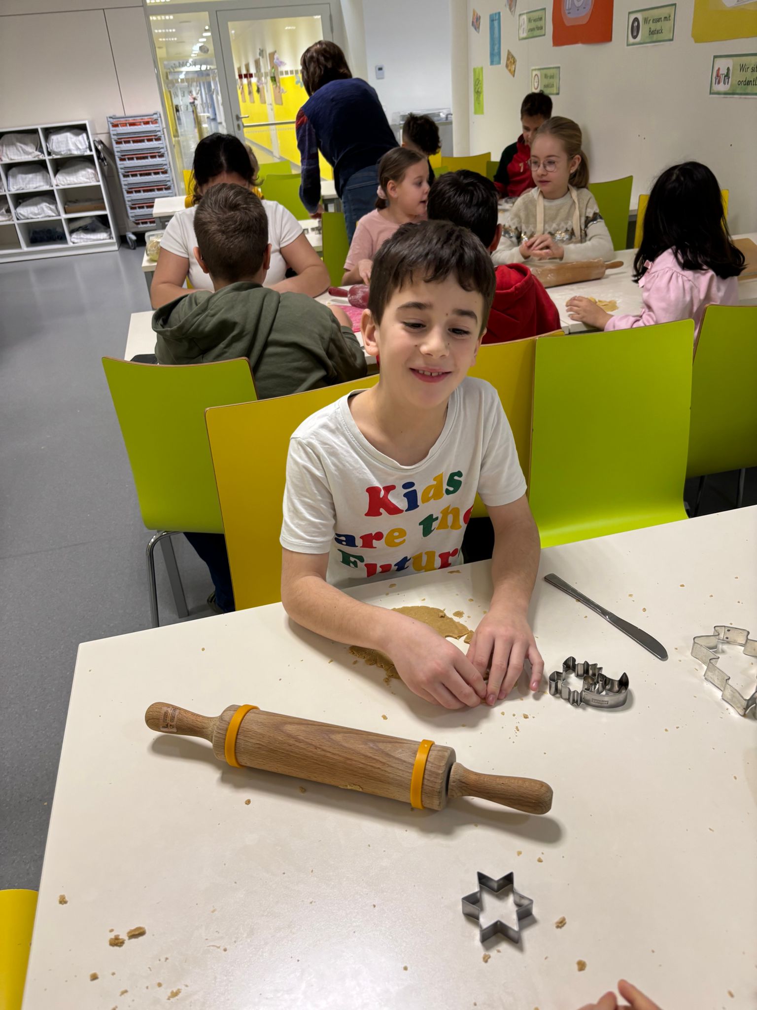 Die Kinder der 4C tauchten auf köstliche Weise in die Adventzeit ein: In unserer Schulküche wurde gemeinsam gebacken, ausgestochen, verziert – und natürlich auch genascht! Der Duft frisch gebackener Kekse erfüllte das ganze Schulhaus und brachte vorweihnachtliche Stimmung in unsere Gänge.