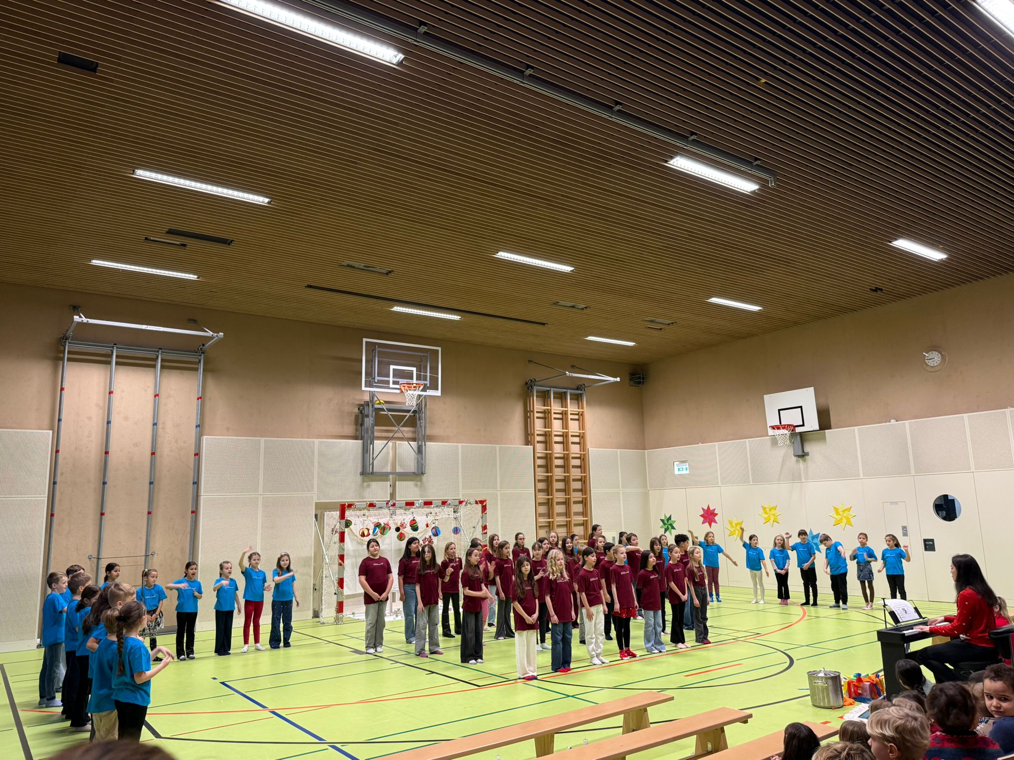 In diesem Schuljahr gestalteten die Rhythmikkinder der 2. Klassen sowie die Chorkinder der 3. und 4. Klassen unter der Leitung der Lehrerinnen Carina Pichler und Anna Grabner ein stimmungsvolles Weihnachtskonzert mit vielfältigen Darbietungen.
