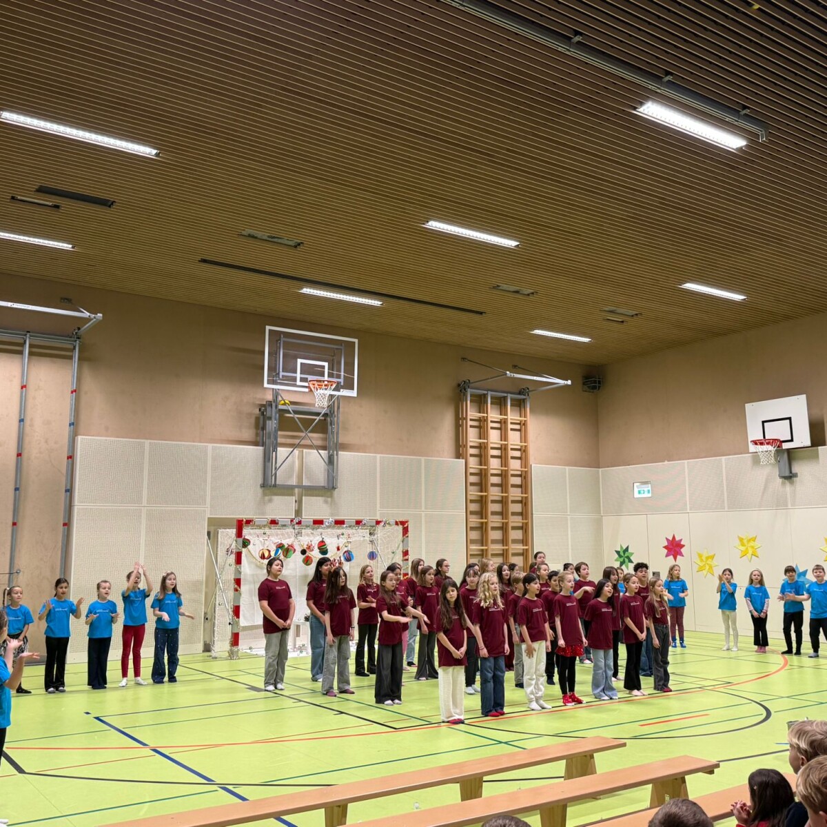 Am darauffolgenden Tag, kurz vor Beginn der Weihnachtsferien, wurde das Konzert gleich noch einmal für alle Kinder der Schule aufgeführt. Auch dabei waren viele strahlende Gesichter im Publikum zu sehen. Den feierlichen Abschluss bildete das gemeinsame Singen von zwei Adventliedern aller Klassen im Turnsaal.