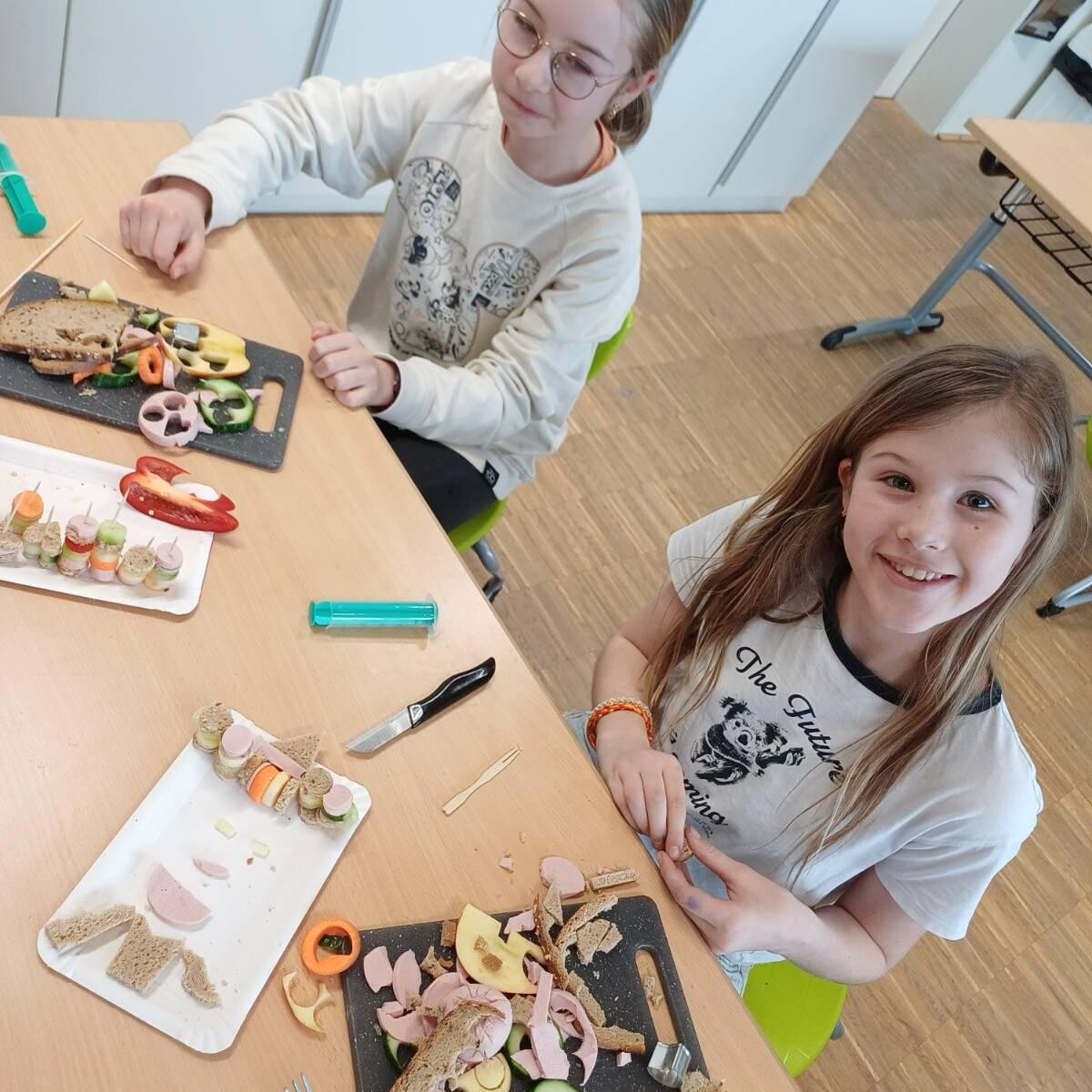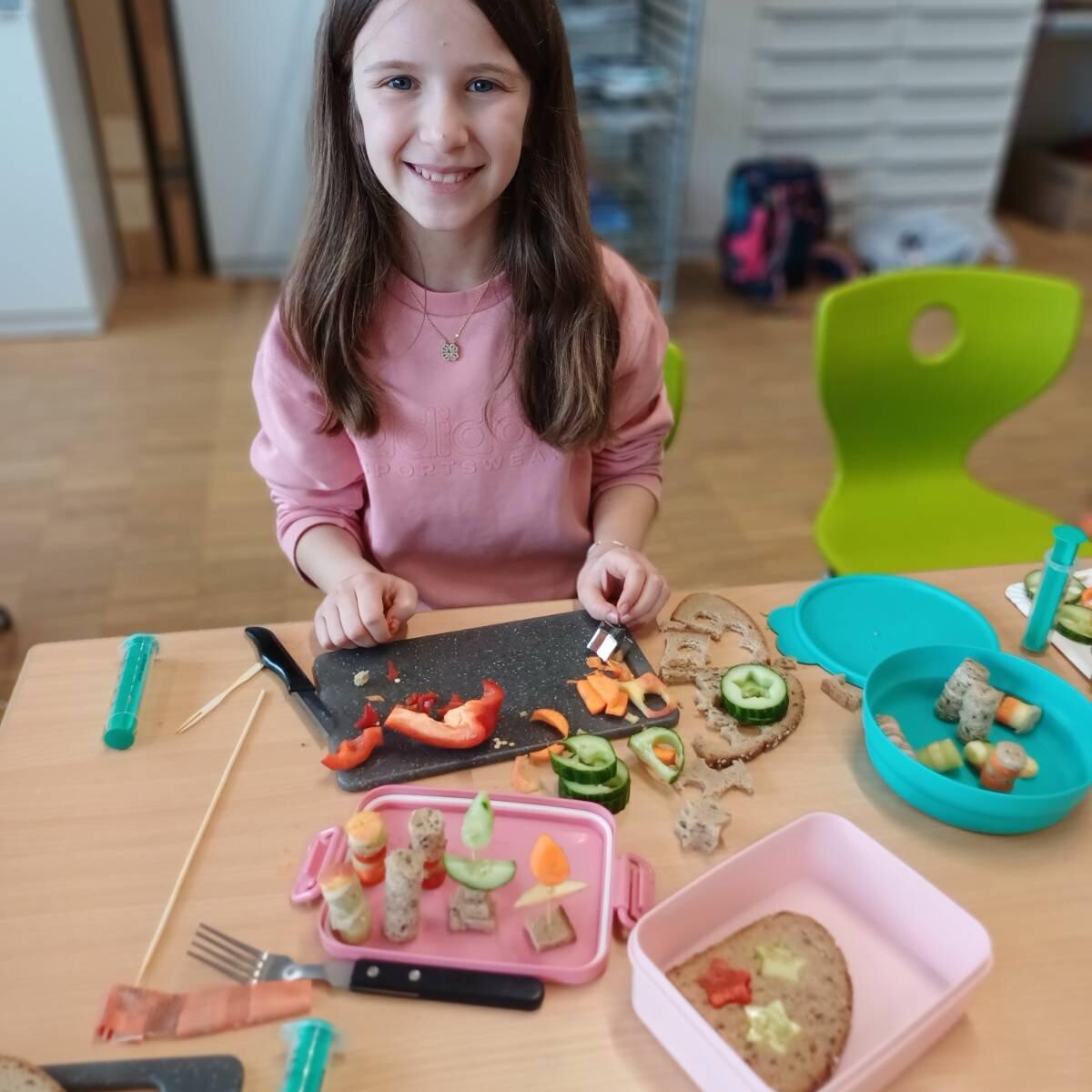 Mit viel Freude und Fantasie entstanden tolle, bunte Kreationen. Gemeinsam erlebten die Kinder, wie man aus gesunden Zutaten auf spielerische Art etwas Besonderes zaubern kann. Nach dem fröhlichen Zubereiten kam natürlich der beste Teil: Die kleinen Künstlerinnen und Künstler durften ihre Werke mit großer Begeisterung selbst genießen.