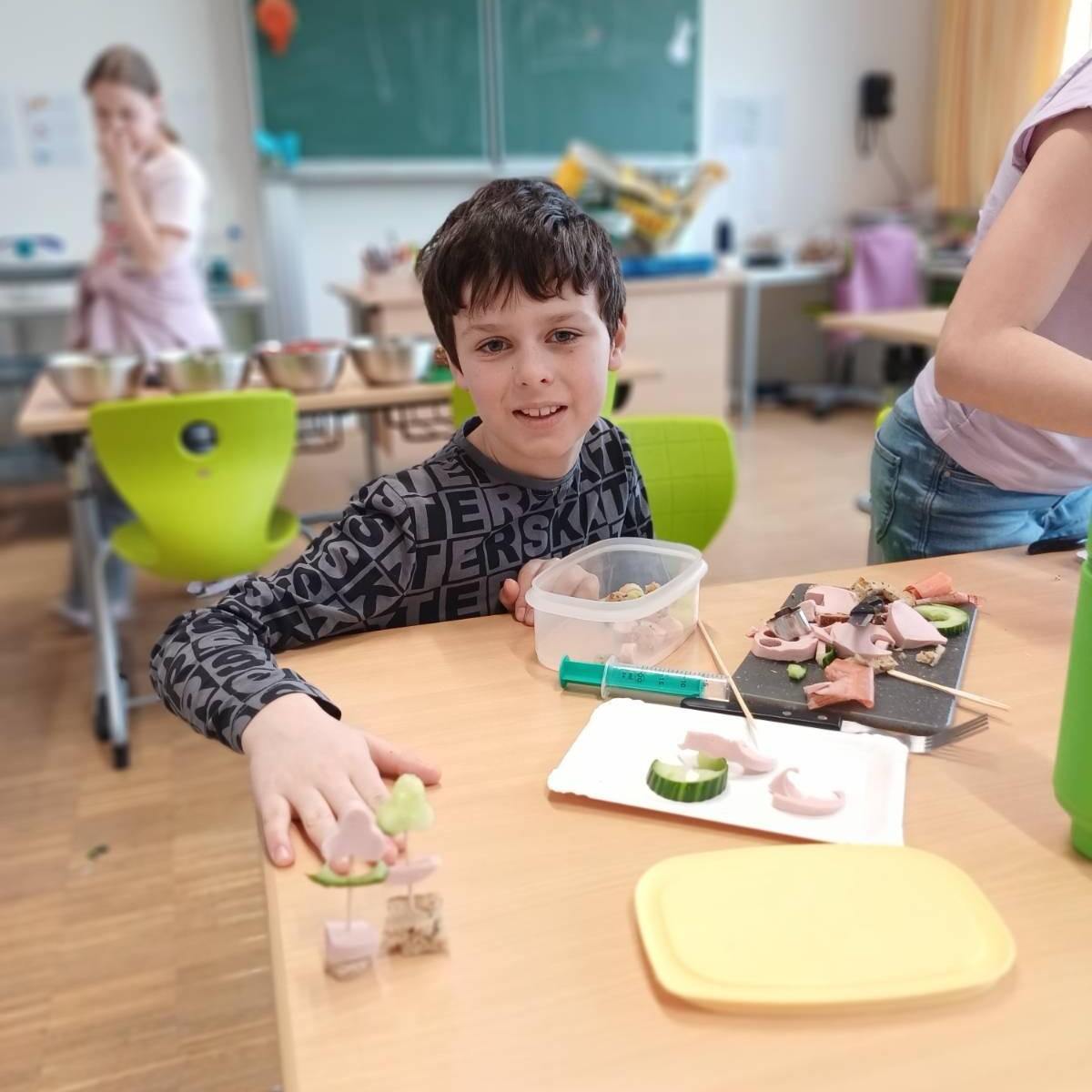 In der unverbindlichen Übung „Wir bleiben gesund“ wurde es diesmal besonders kreativ: Unter dem Motto „Mit dem Essen spielt man!“ gestalteten die Kinder Lebensmittel auf spielerische Weise mit Keksausstechern und Spritzen. Dabei lernten sie hautnah, wie gesunde Ernährung, Spaß und kreatives Gestalten zusammenhängen.