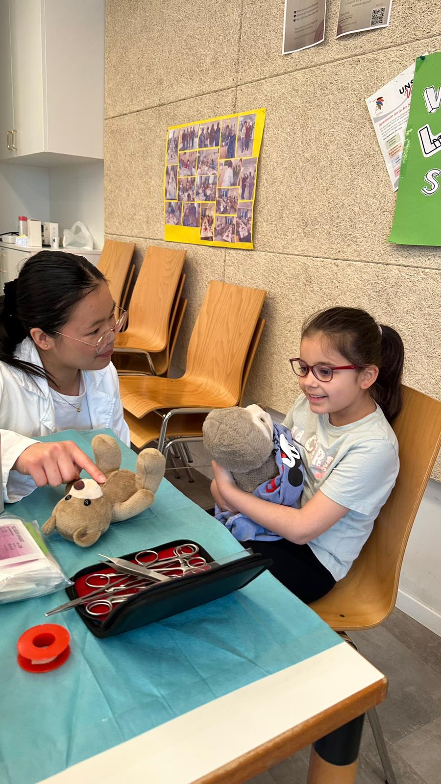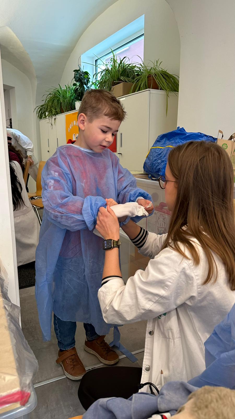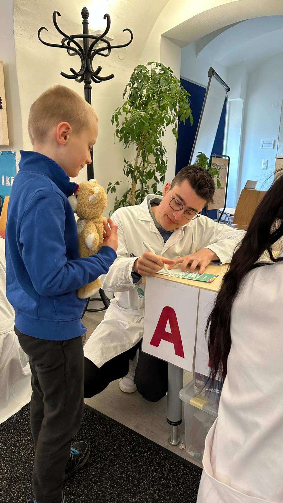 Neben der Versorgung der „Patienten“ wurden auch wichtige Gesundheitsthemen vermittelt. So erfuhren die Kinder unter anderem, wie man richtig Zähne putzt und worauf beim Umgang mit Medikamenten zu achten ist. Mit viel Geduld und kindgerechten Erklärungen vermittelten die angehenden Medizinerinnen und Mediziner wertvolles Wissen für den Alltag.