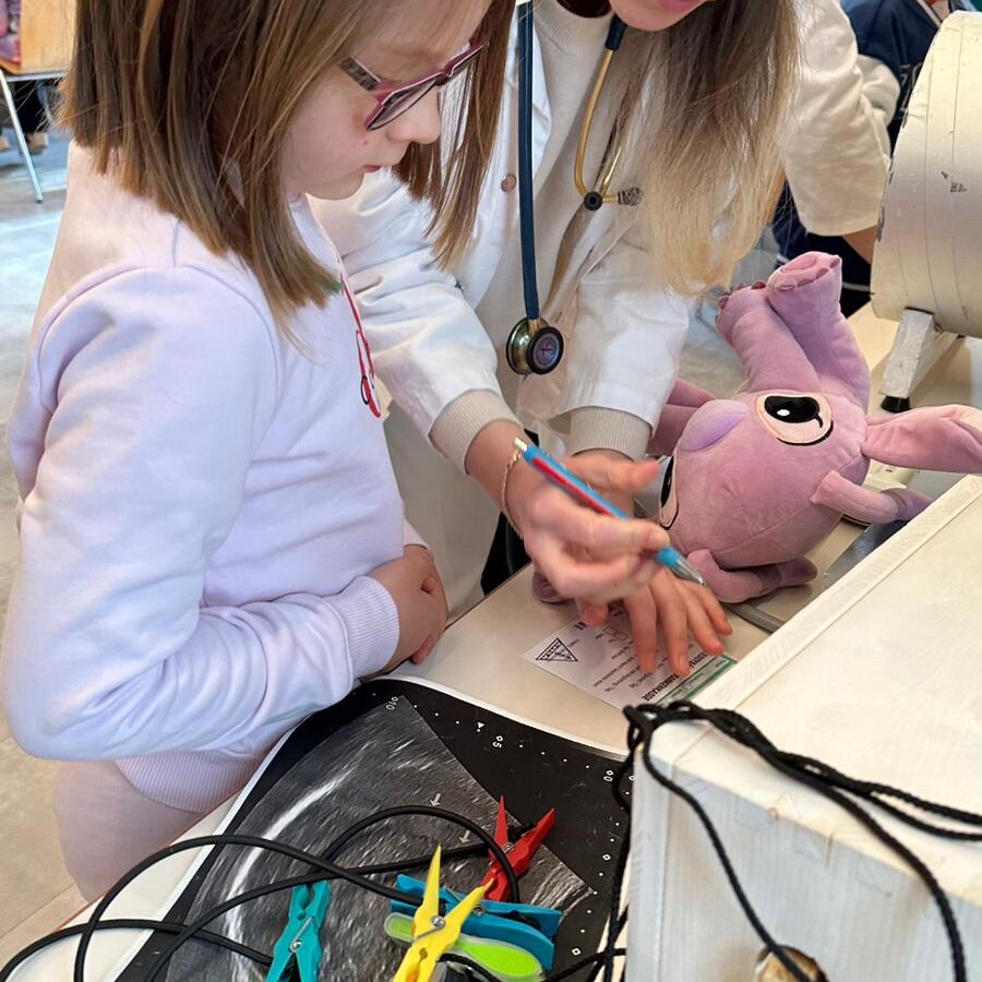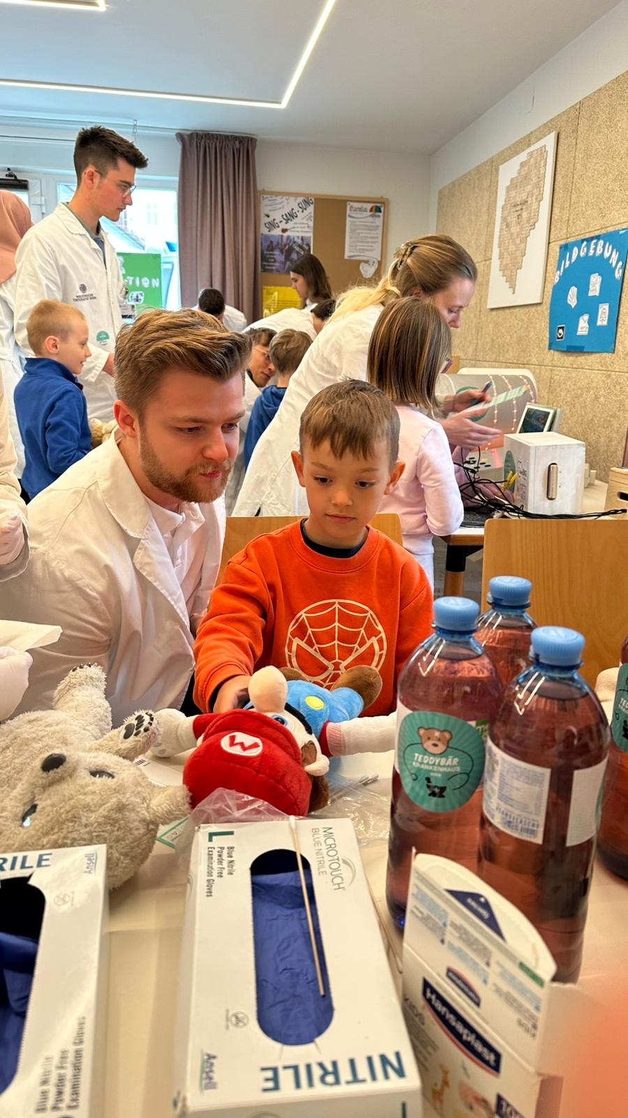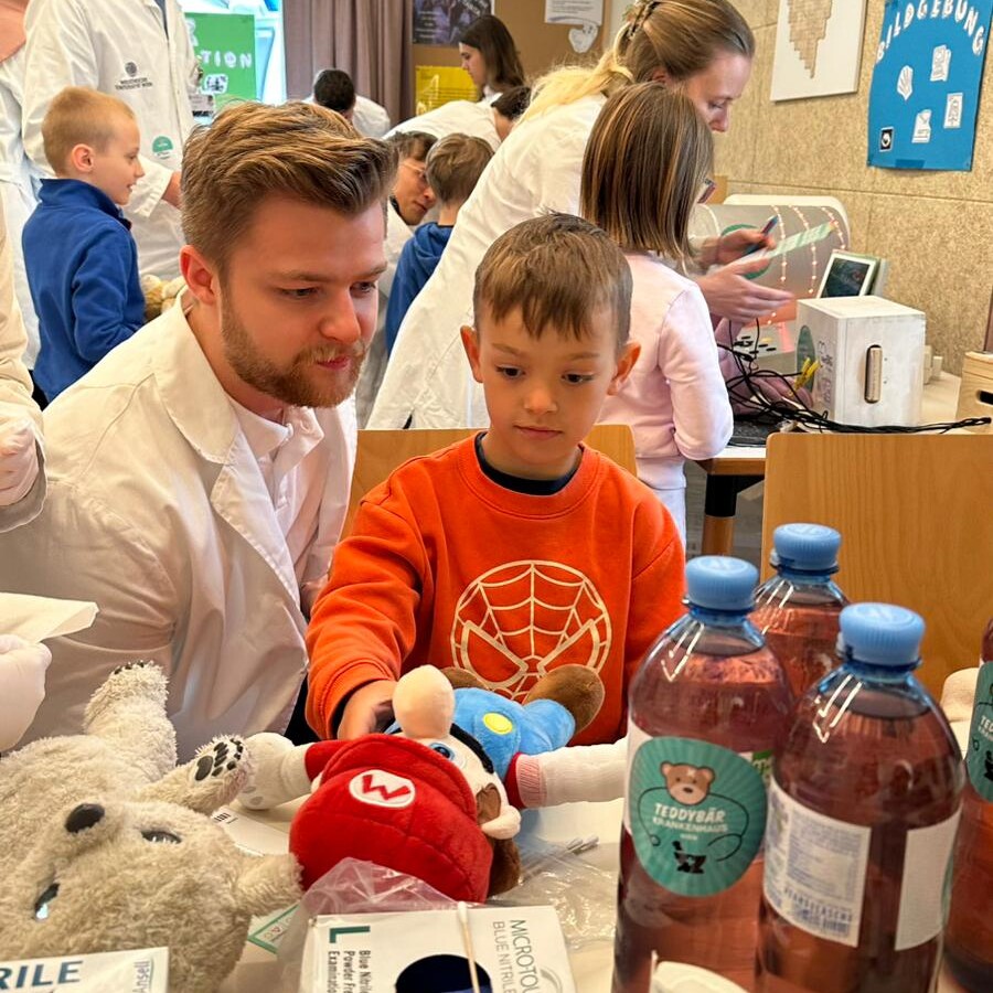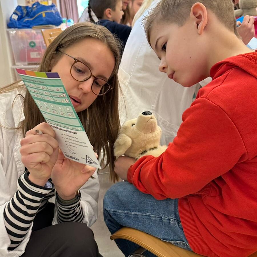 Im Mittelpunkt standen die mitgebrachten Kuscheltiere, die von den Kindern „behandelt“ wurden. Ob kleine Operationen, Röntgenuntersuchungen oder Impfungen, gemeinsam mit Medizinstudentinnen und Medizinstudenten schlüpften die Kinder in die Rolle von Ärztinnen und Ärzten. Dabei lernten sie medizinische Geräte kennen und konnten in entspannter Atmosphäre Fragen stellen.