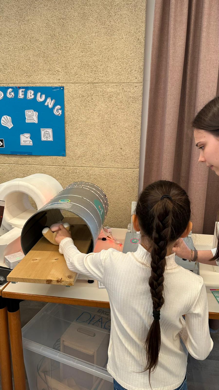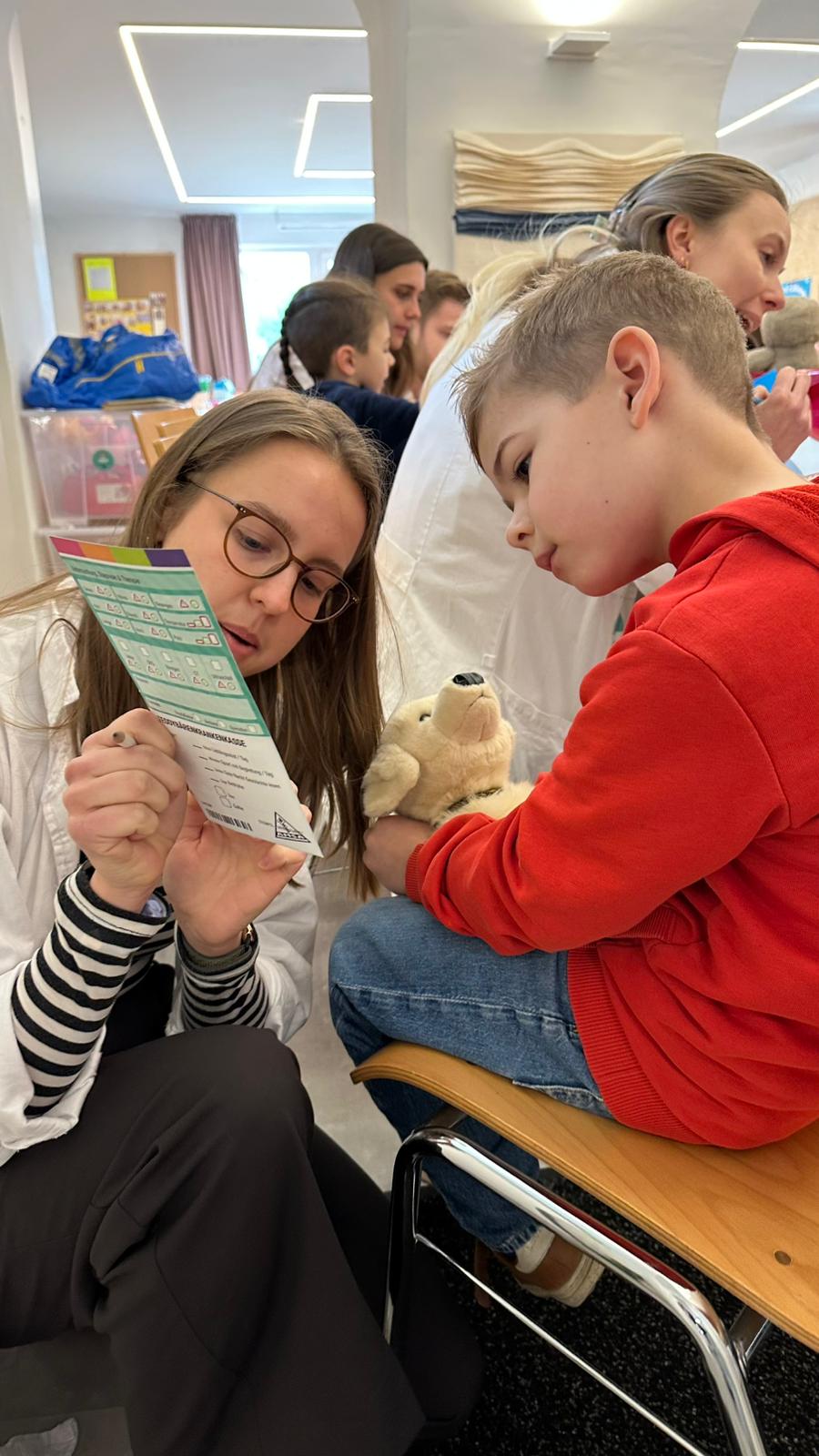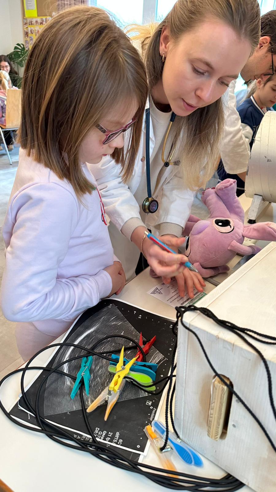 Im Mittelpunkt standen die mitgebrachten Kuscheltiere, die von den Kindern „behandelt“ wurden. Ob kleine Operationen, Röntgenuntersuchungen oder Impfungen, gemeinsam mit Medizinstudentinnen und Medizinstudenten schlüpften die Kinder in die Rolle von Ärztinnen und Ärzten. Dabei lernten sie medizinische Geräte kennen und konnten in entspannter Atmosphäre Fragen stellen.